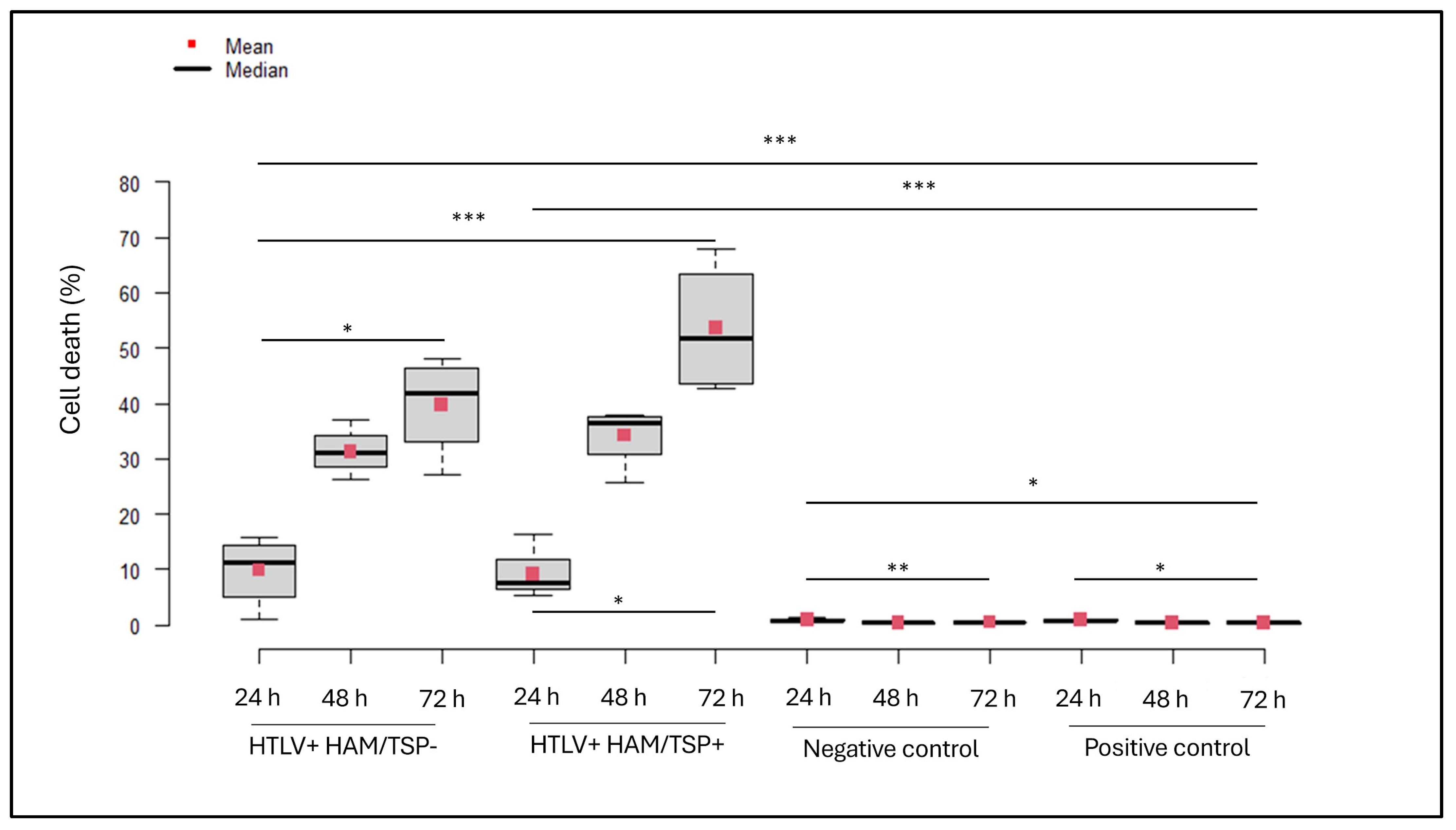 HTLV+ HAM/TSP− 48 h and Positive control 72 h | 26.88 | <0.0005 |