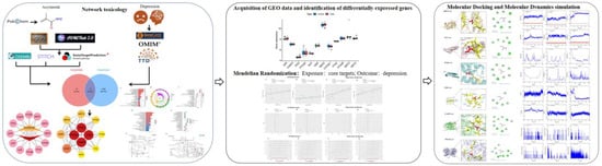 While GA formation is well-established as a key mechanism for ACR’s carcinogenicity [17], its contribution to ACR-induced neurotoxicity and depression remains poorly defined. To bridge this knowledge gap, we hypothesized that dietary acrylamide (ACR) promotes depression through its epoxide metabolite GA, which mediates the suppression of SIRT3 function, leading to mitochondrial oxidative injury. To test this, we employed an integrative computational biology approach with the following aims: to investigate the potential causal effect of ACR on MDD risk using Mendelian randomization (MR); to identify the core protein targets and biological pathways through network toxicology and transcriptomic analysis; and to specifically test the novel hypothesis that SIRT3-mediated mitochondrial oxidative injury is a central mechanism linking ACR to depression, using molecular docking and dynamics simulations. Our work provides a foundational hypothesis-generating framework for future experimental validation and risk assessment. This comprehensive workflow (Figure 1) pioneers a novel approach to repositioning ACR-induced depression within the oxidative stress paradigm.
