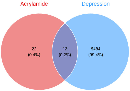 To identify the potential mechanistic links between ACR exposure and depression, the intersection between ACR-associated targets and depression-related genes was analyzed using R software through the “ggvenn” package, identifying shared ACR’s target genes and depression-associated genes, subsequently constructing edge lists and annotation matrices.