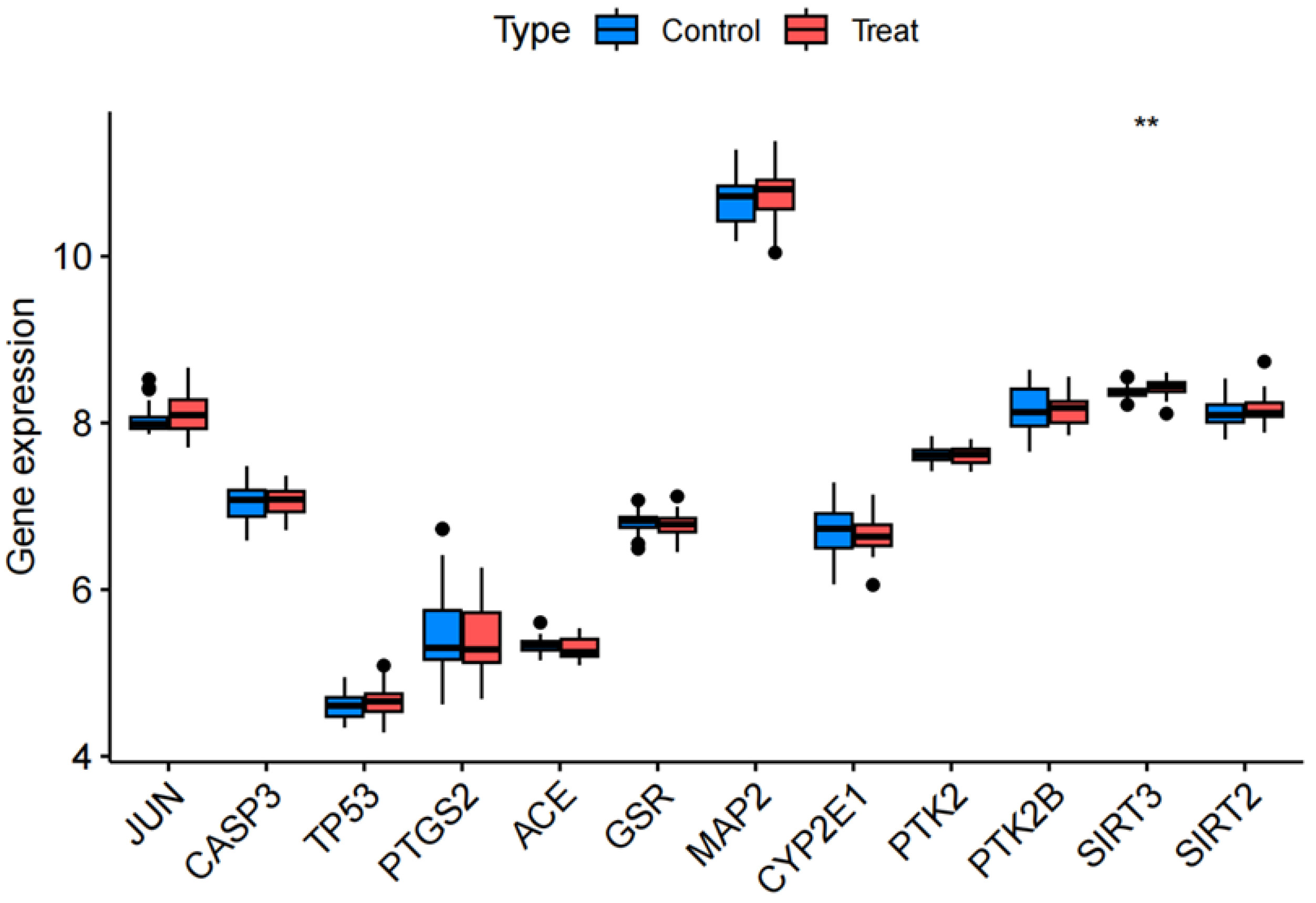 41]. Within this context, TP53 and CASP3 are hypothesized to act as critical downstream executors of apoptosis in our model, likely activated by the oxidative damage resulting from SIRT3 suppression.