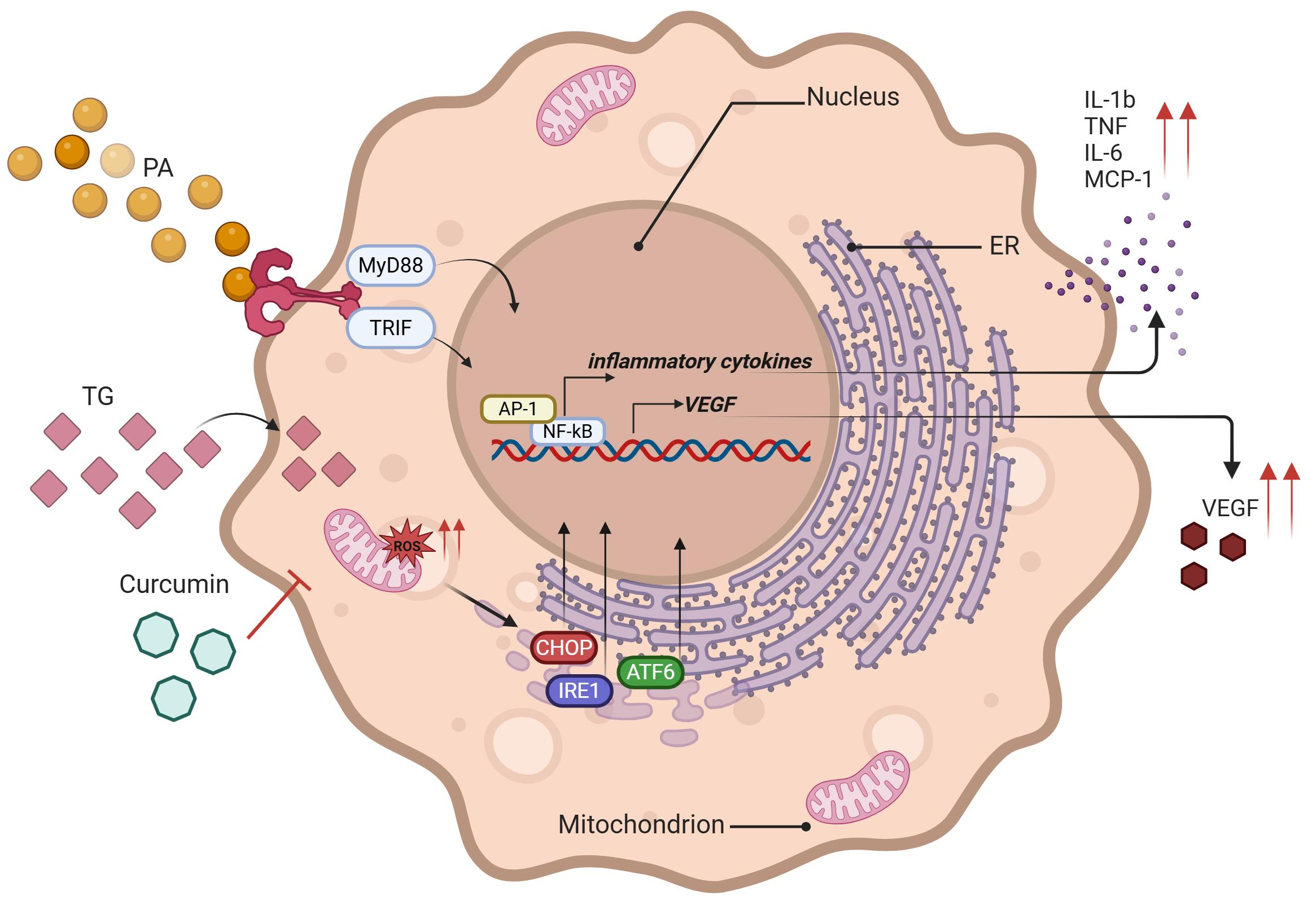 Bahman, F.; Nadeem, T.; Alayyaf, A.; Al Madhoun, A.; Al-Mulla, F.; Sindhu, S.; Ahmad, R. Endoplasmic Reticulum Stress Drives VEGF Gene Expression in Monocytic Cells. Curr. Issues Mol. Biol. 2025, 47, 839. https://doi.org/10.3390/cimb47100839
