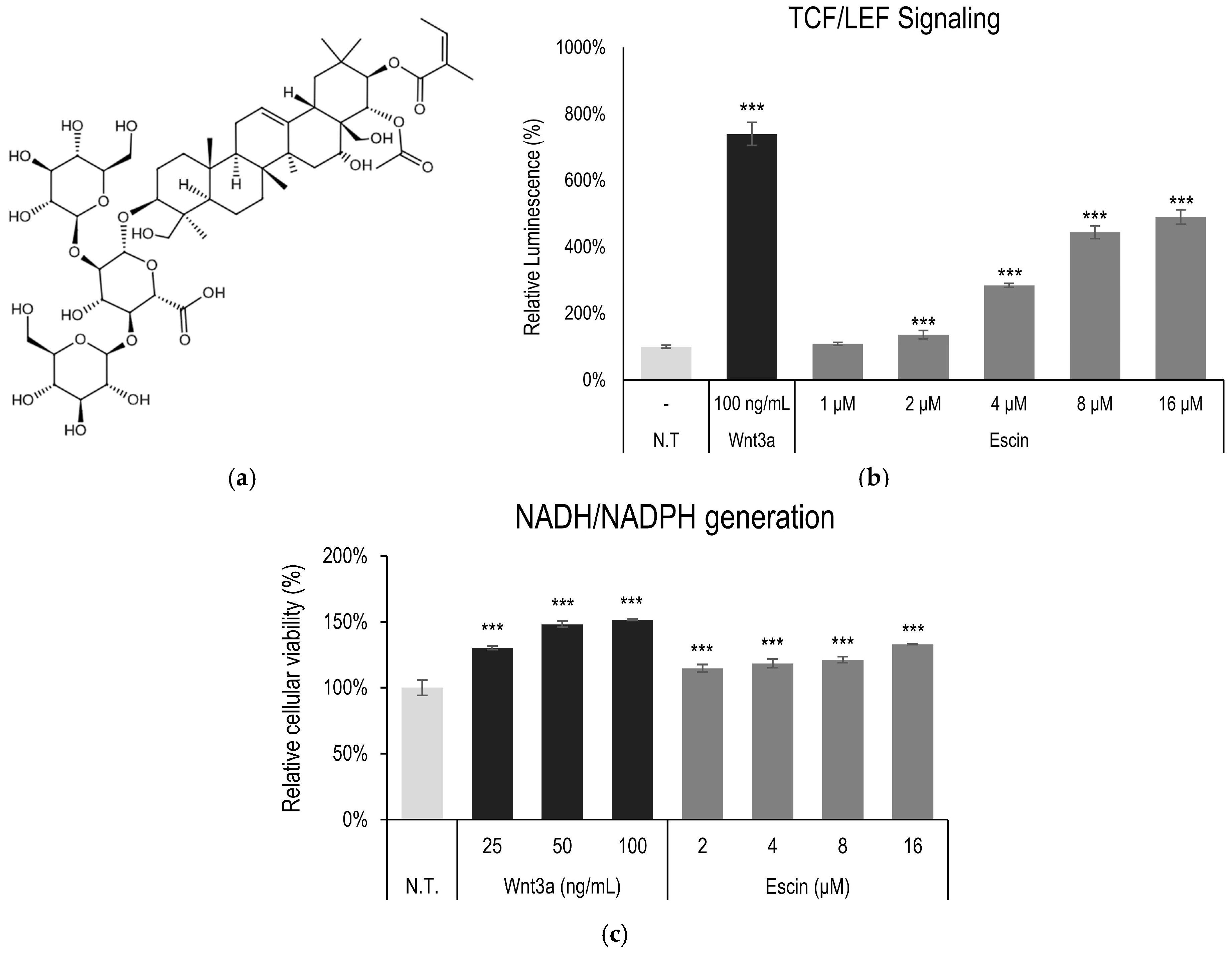 3.1. Escin Stimulated Wnt/β-Catenin Signaling
