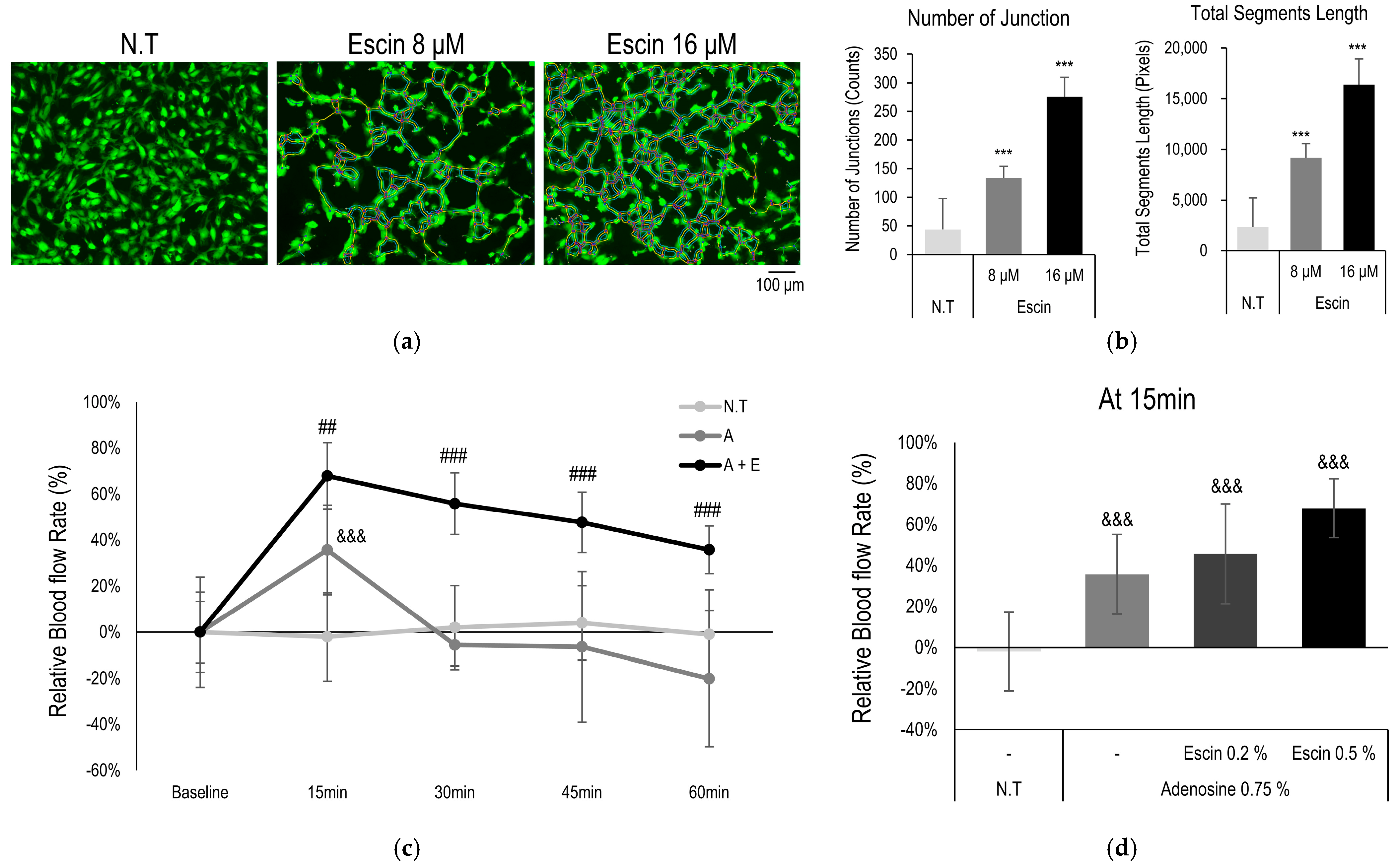 Kim, J.; Joo, J.H.; Rim, H.; Kim, S.H.; Shin, J.y.; Jun, S.-H.; Kang, N.-G. Microcirculation-Promoting Effect of Escin on Cutaneous Tissue via Gsk3β Down-Regulation. Curr. Issues Mol. Biol. 2025, 47, 840. https://doi.org/10.3390/cimb47100840