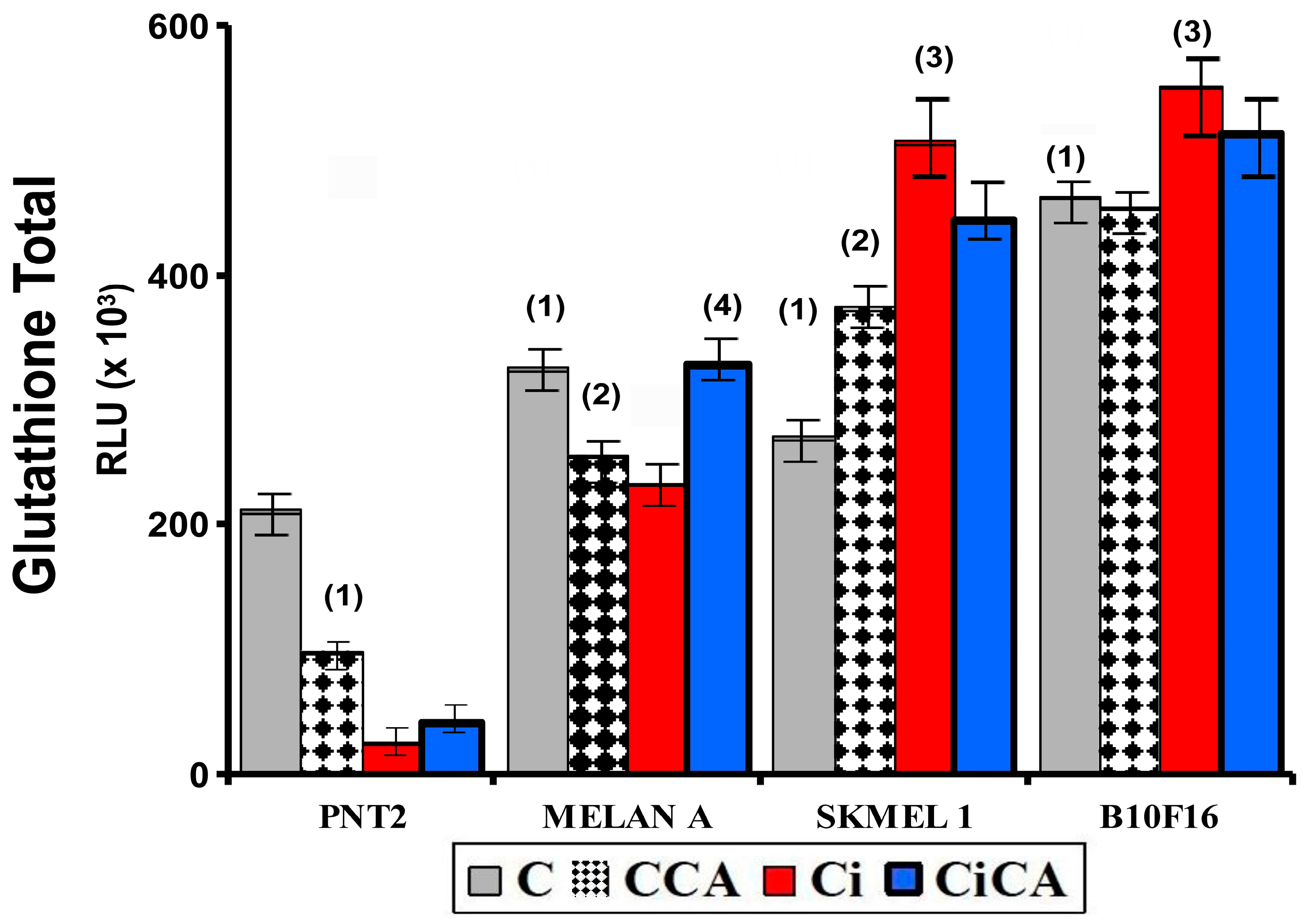- Kinnaert, E.; Duez, P.; Morandini, R.; Dubois, J.; Van Houtte, P.; Ghanem, G. Cysteine but not glutathione modulates the radiosensitivity of human melanoma cells by affecting both survival and DNA damage. Pigment Cell Res. 2004, 17, 275–280. [Google Scholar] [CrossRef]
