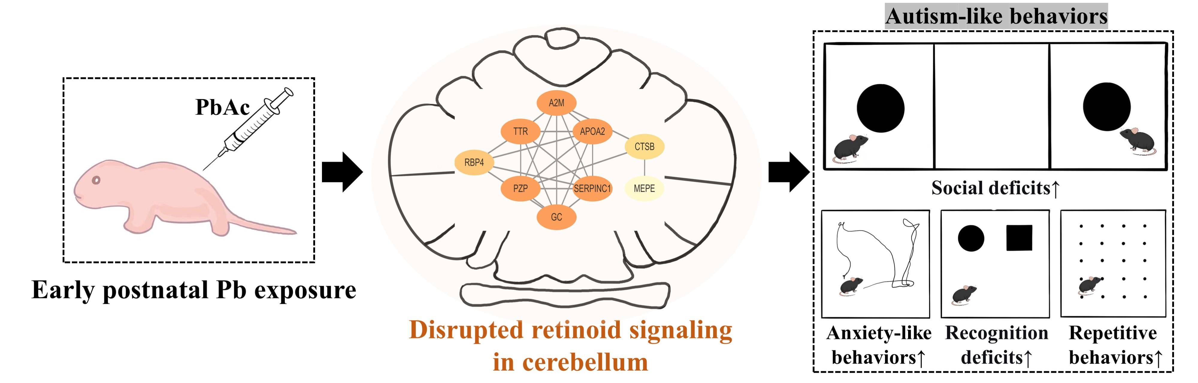Xia, X.; Zhou, X.; Ma, Z.; Liu, L.; Wang, Y.; Wu, Y.; Zhang, Y.; Wang, J. Contributions of Retinoid Signaling to Autism-like Behaviors Induced by Early Postnatal Lead Exposure in the Mouse Cerebellum. Curr. Issues Mol. Biol. 2025, 47, 861. https://doi.org/10.3390/cimb47100861
