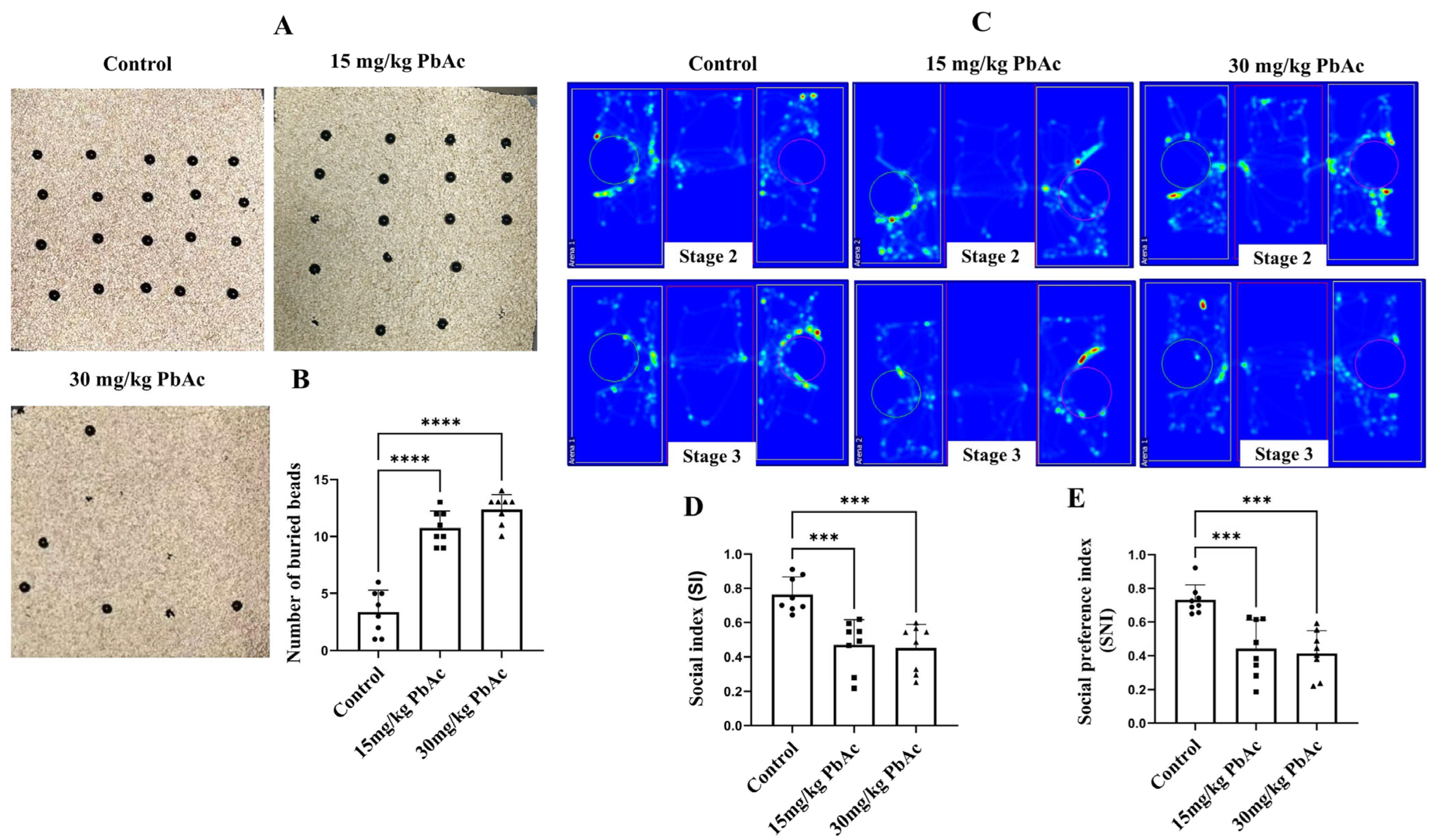 3.1. Early Postnatal Pb Exposure Induced Significant Autism-like Behaviors in Offspring