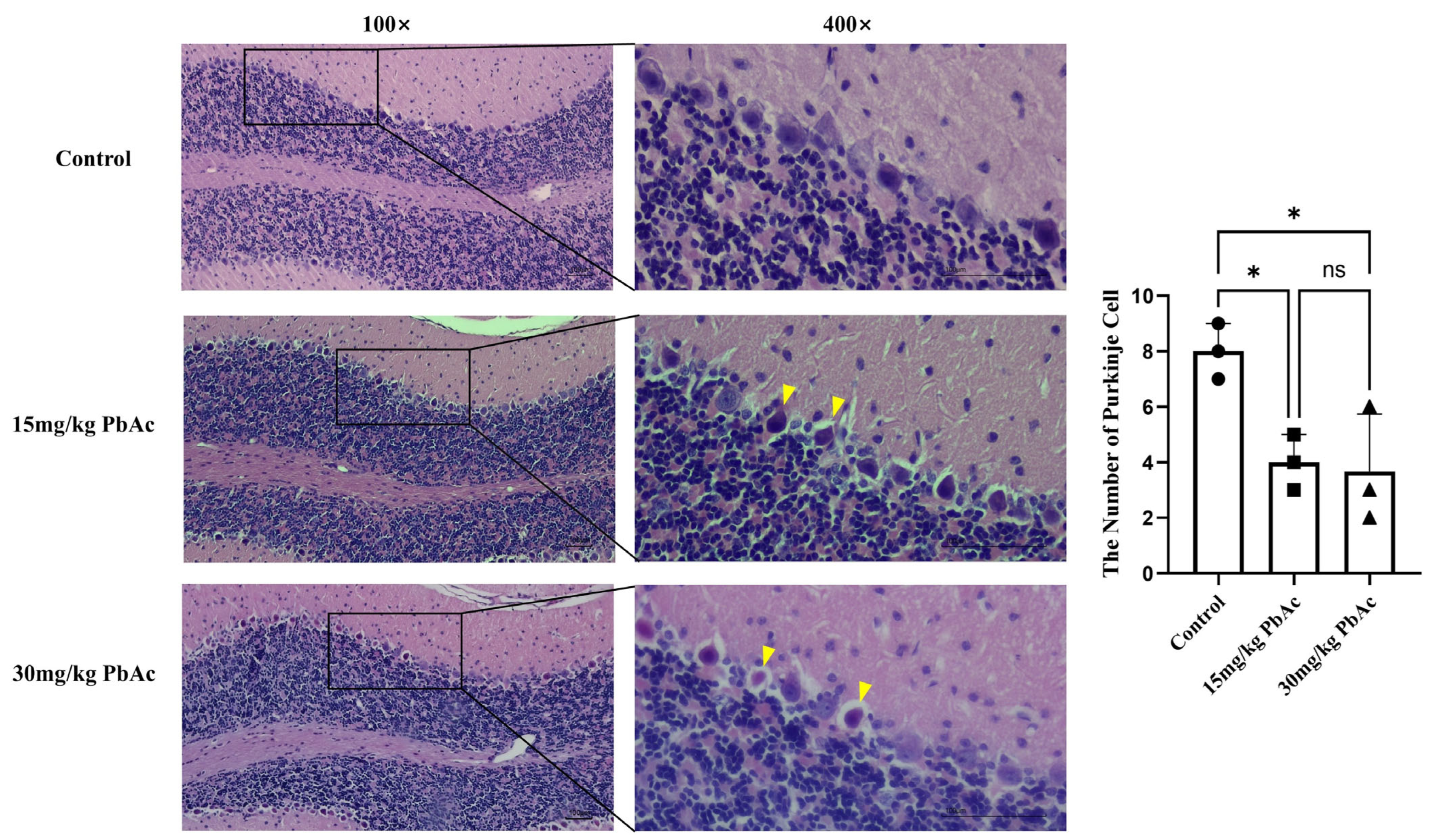 3.2. Early Postnatal Pb Exposure Induced Cerebellar Impairment