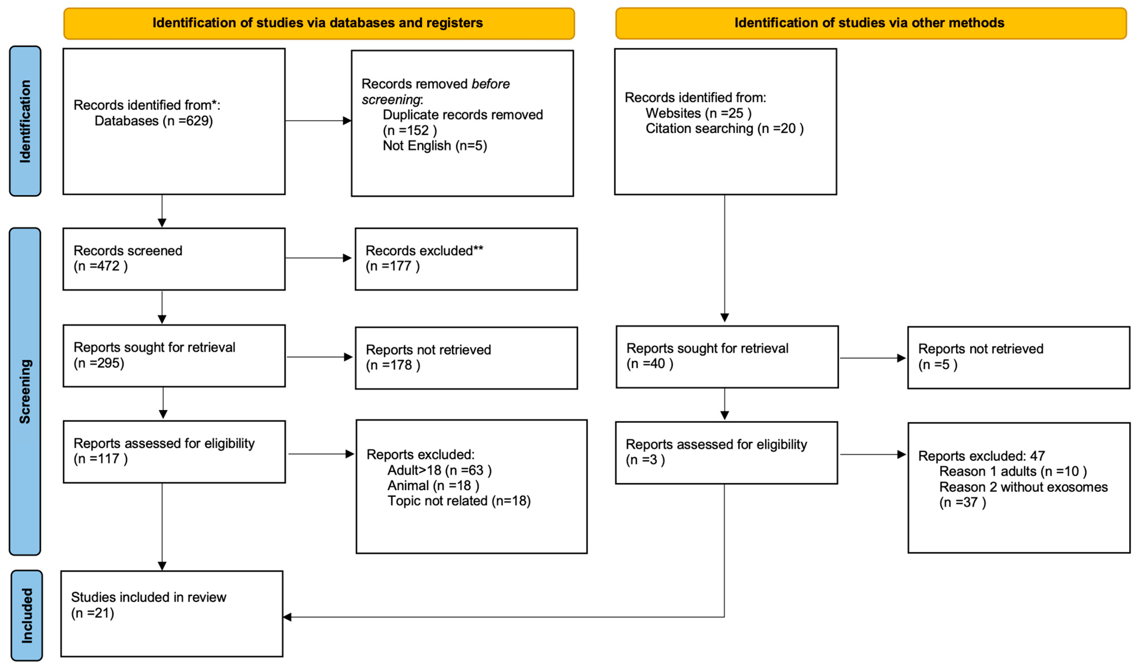 - Papers investigating EVs but without specific analysis of exosomal content or functions.