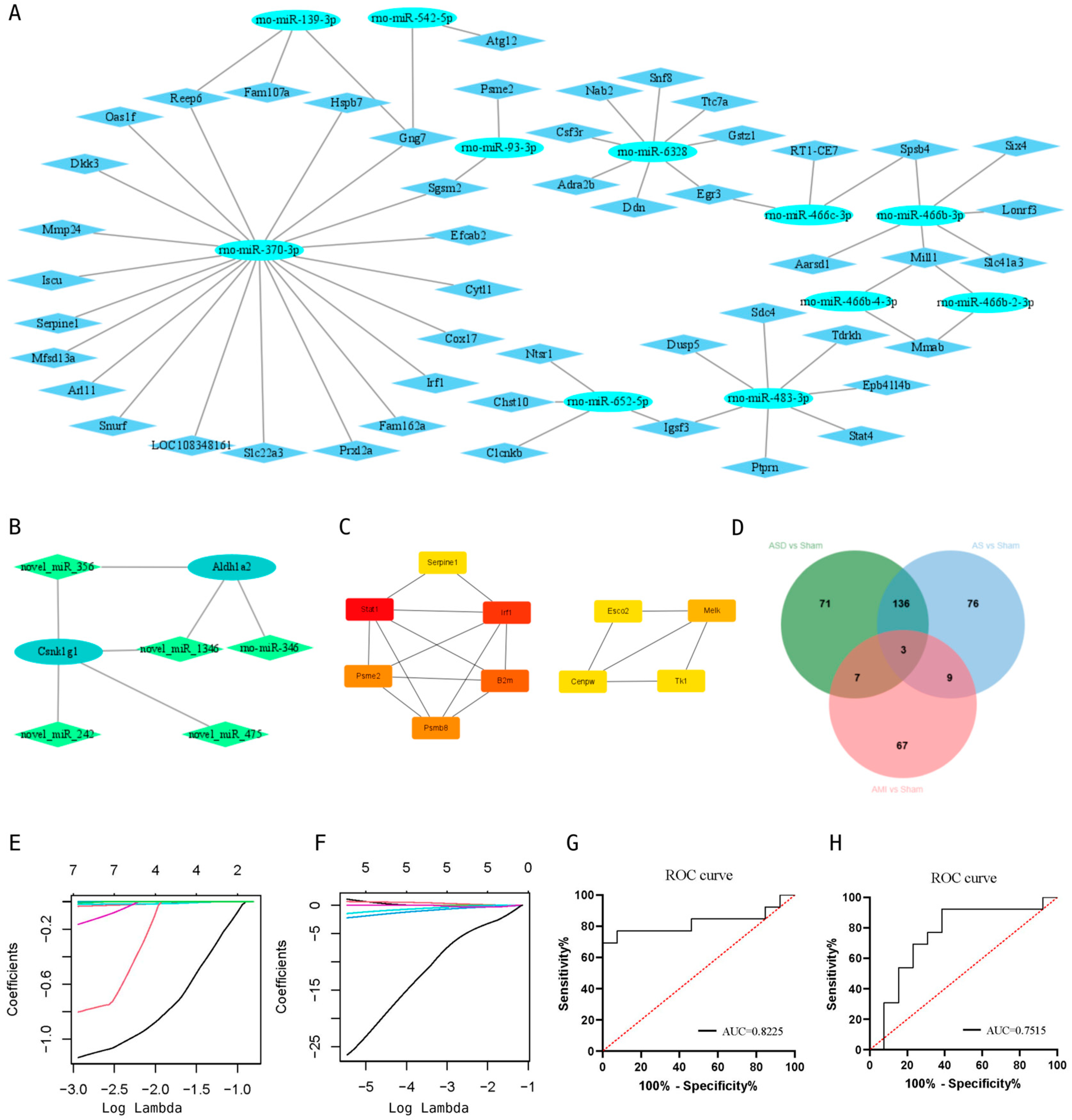 - Guo, Q.; Wu, D.; Jia, D.; Zhang, X.; Wu, A.; Lou, L.; Zhao, M.; Zhao, M.; Gao, Y.; Wang, M.; et al. Bioinformatics prediction and experimental verification of a novel microRNA for myocardial fibrosis after myocardial infarction in rats. PeerJ 2023, 11, e14851. [Google Scholar] [CrossRef]