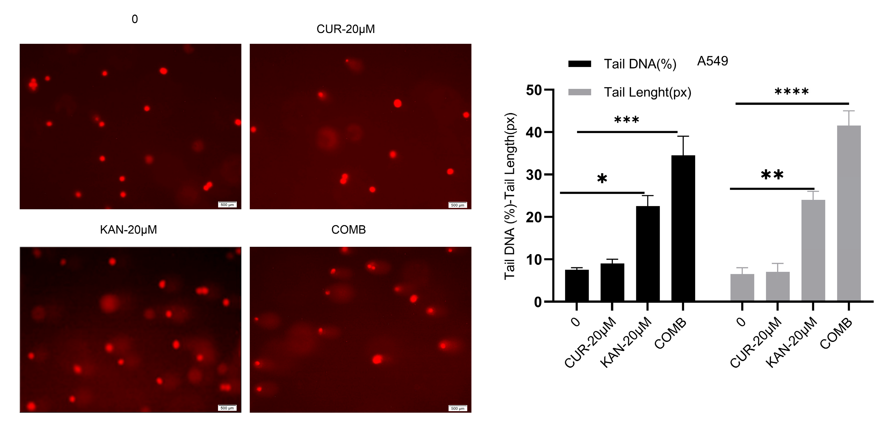 3.3. DNA Damage in A549 Cells Induced by KAN438757–Curcumin Combination