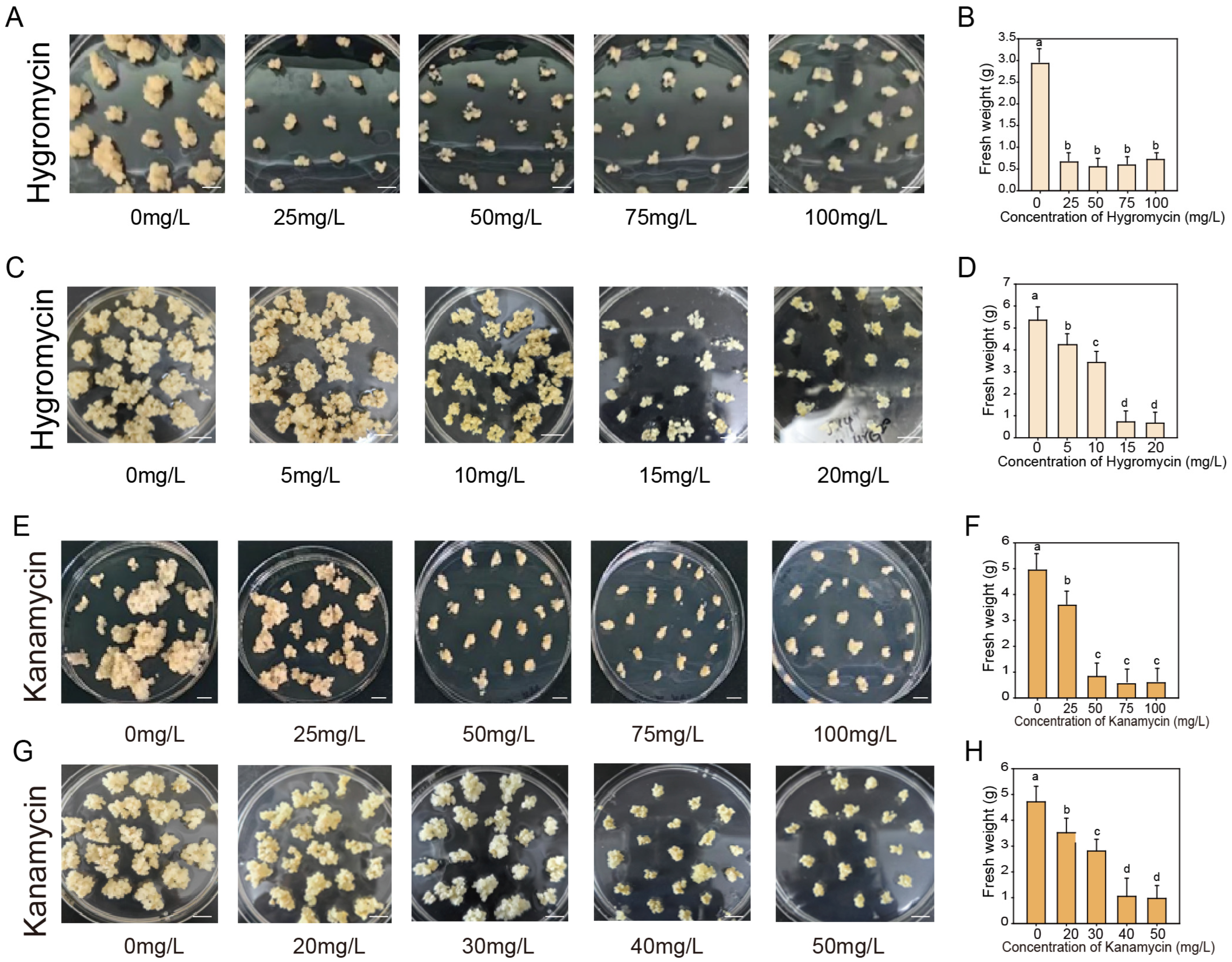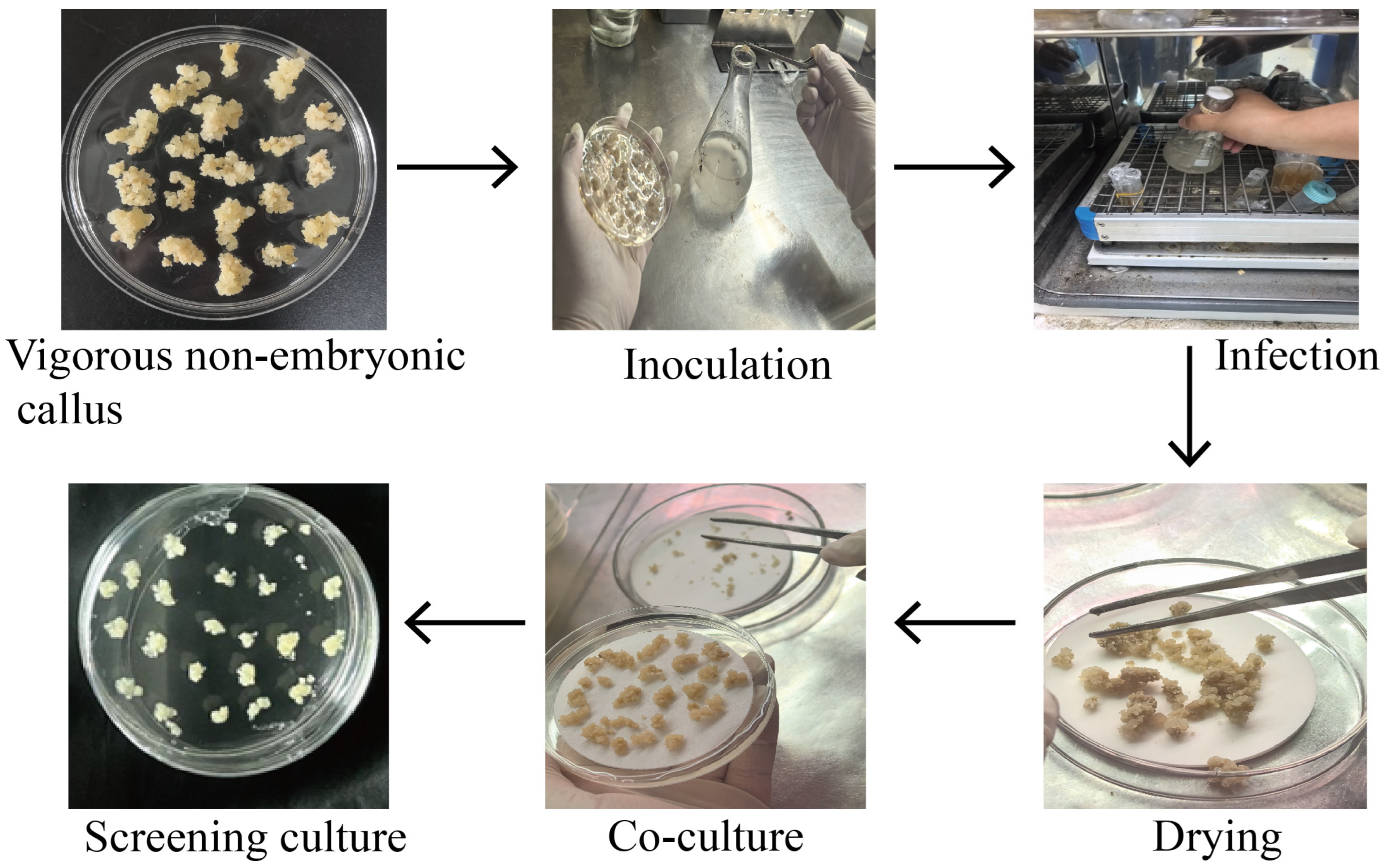 | screening medium | MS + 45 g/L Glucose + 1 mg/L 2, 4-D + 0.01 mg/L 6-BA + 3 g/L gel + 300 mg/L cef + 35 mg/L Kana |
