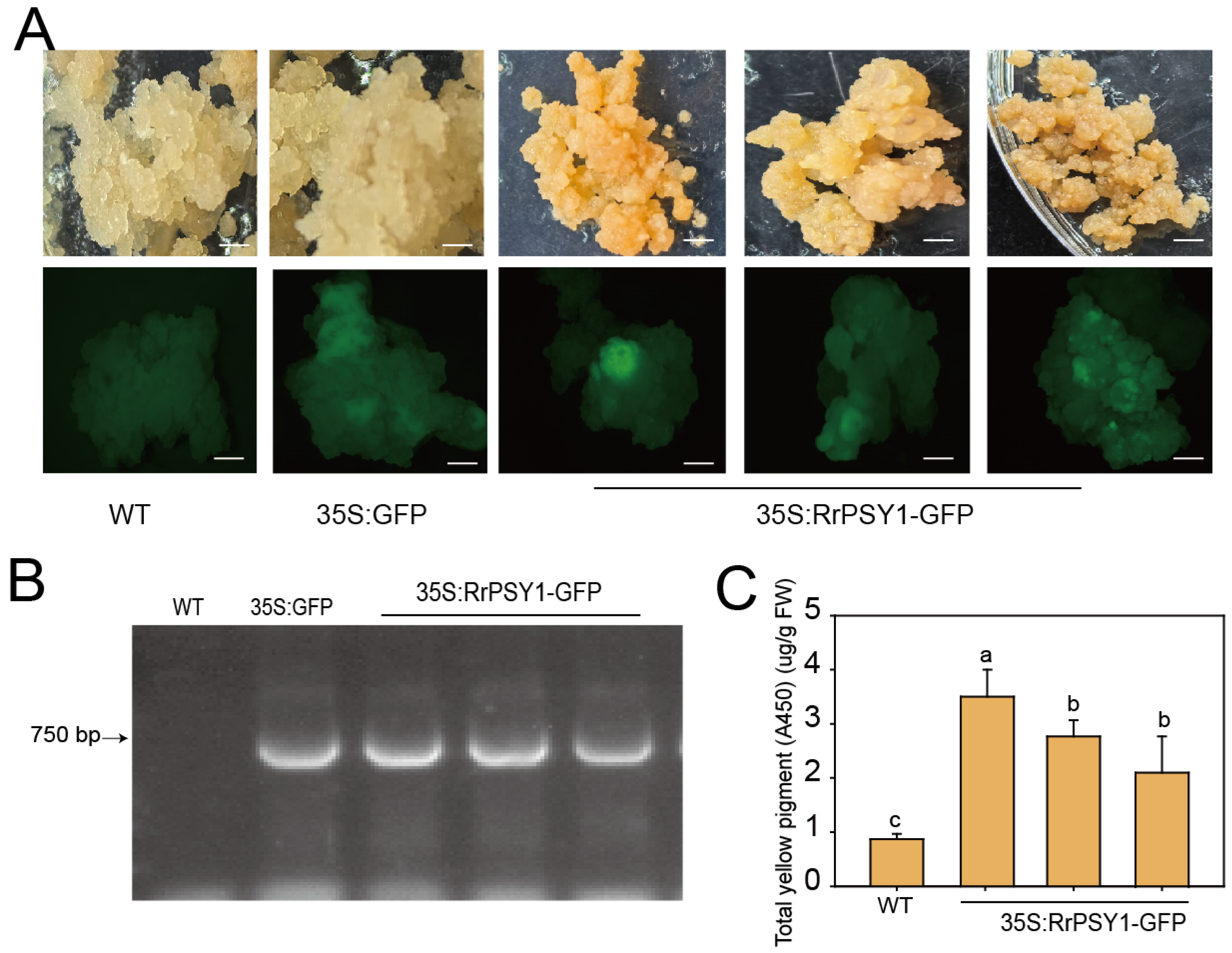 3.3. Genetic Transformation of Callus with RrPSY1 Gene