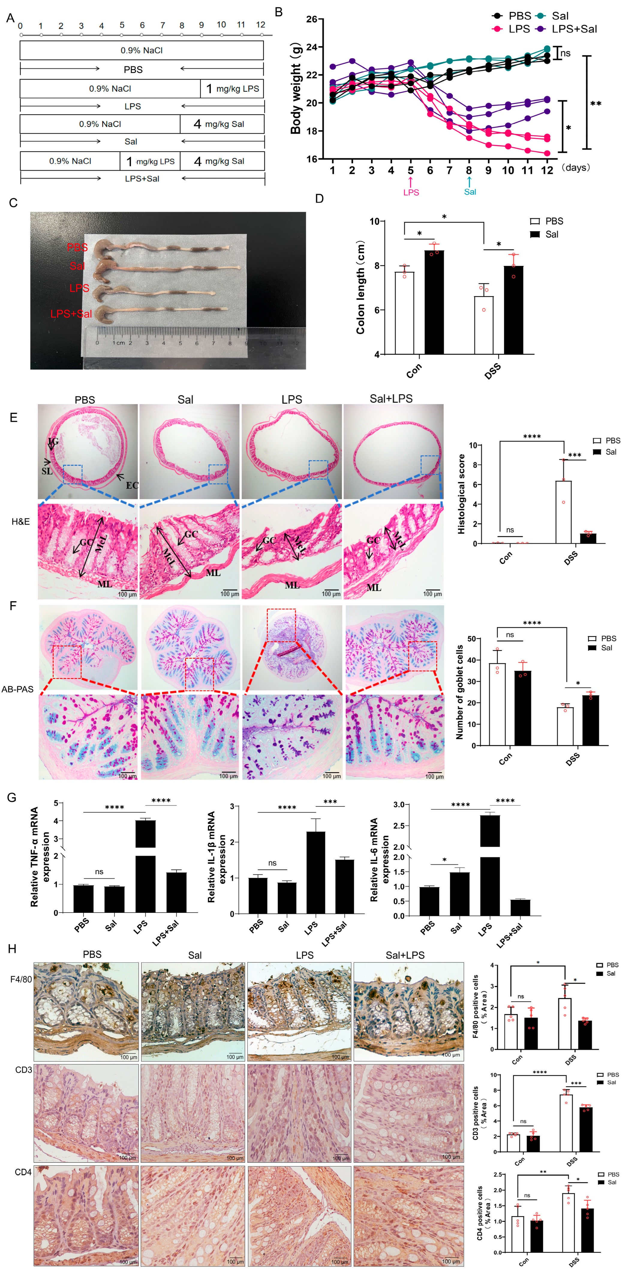 3.1. Salidroside Alleviates Inflammation on LPS−Induced Mice