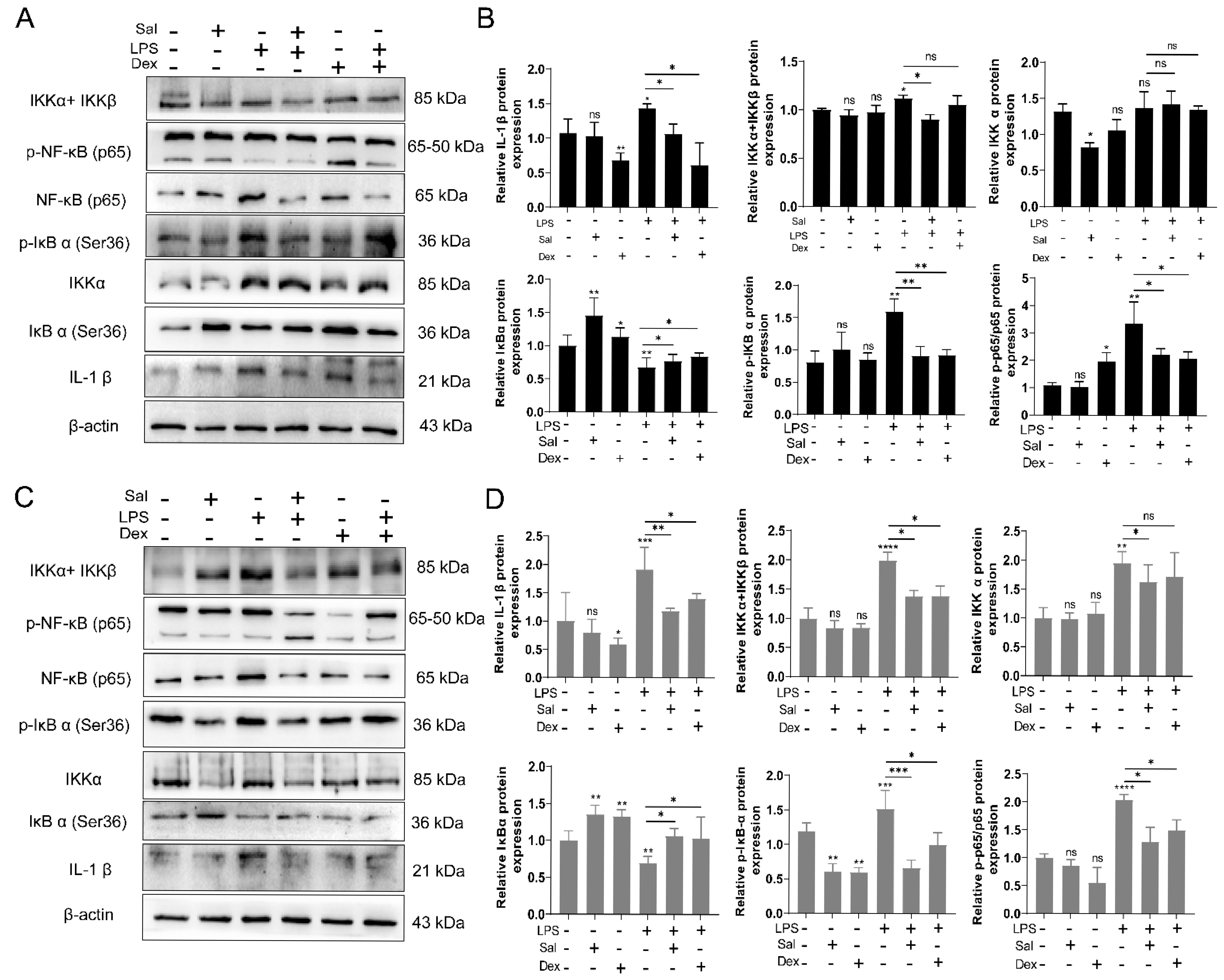 3.3. Salidroside Ameliorates Cell Inflammation by Inhibiting the IKK/NF−κB Signaling Pathway