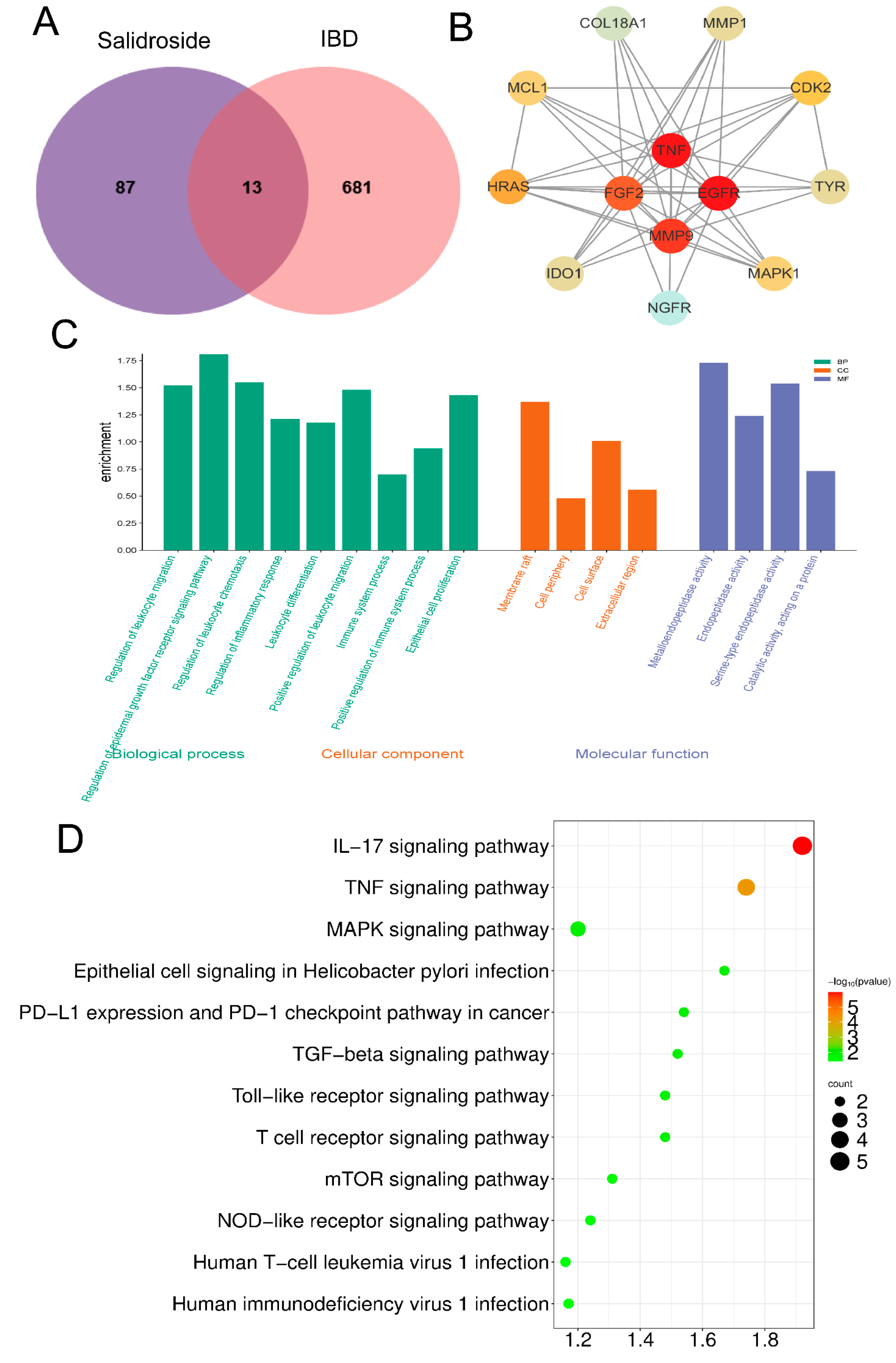 APA StyleOuyang, Q., Zhou, H., Yu, Z., Jiang, H., Ji, C., Sun, Y., Zhou, F., Xiang, S., & Hu, X. (2025). IKK/NF−κB Inactivation by Salidroside via Targeting TNF−α for the Treatment of LPS−Induced Colitis. Current Issues in Molecular Biology, 47(11), 896. https://doi.org/10.3390/cimb47110896
