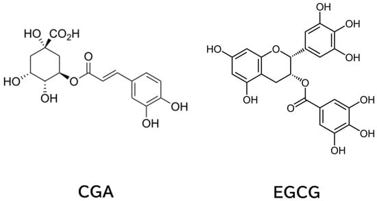 Coffee and tea, made from Camellia sinensis (tea plant), are the most consumed beverages worldwide [1]. Intake of these beverages is believed to have beneficial effects in various diseases, including cancer. Chlorogenic acid (CGA) in coffee and epigallocatechin-3-O-gallate (EGCG) in tea (Figure 1) have been shown to contribute to these effects, and we have discussed these aspects [2,3,4].