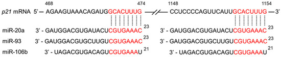 Oncogenic miR-17 family miR-20a, miR-93, and miR-106b bind to p21 mRNA and suppress its expression, leading to cancer development [128]. Several studies have demonstrated downregulation of these miRs by CGA and EGCG [4]. Figure 3 illustrates how these miRs downregulate p21 expression.