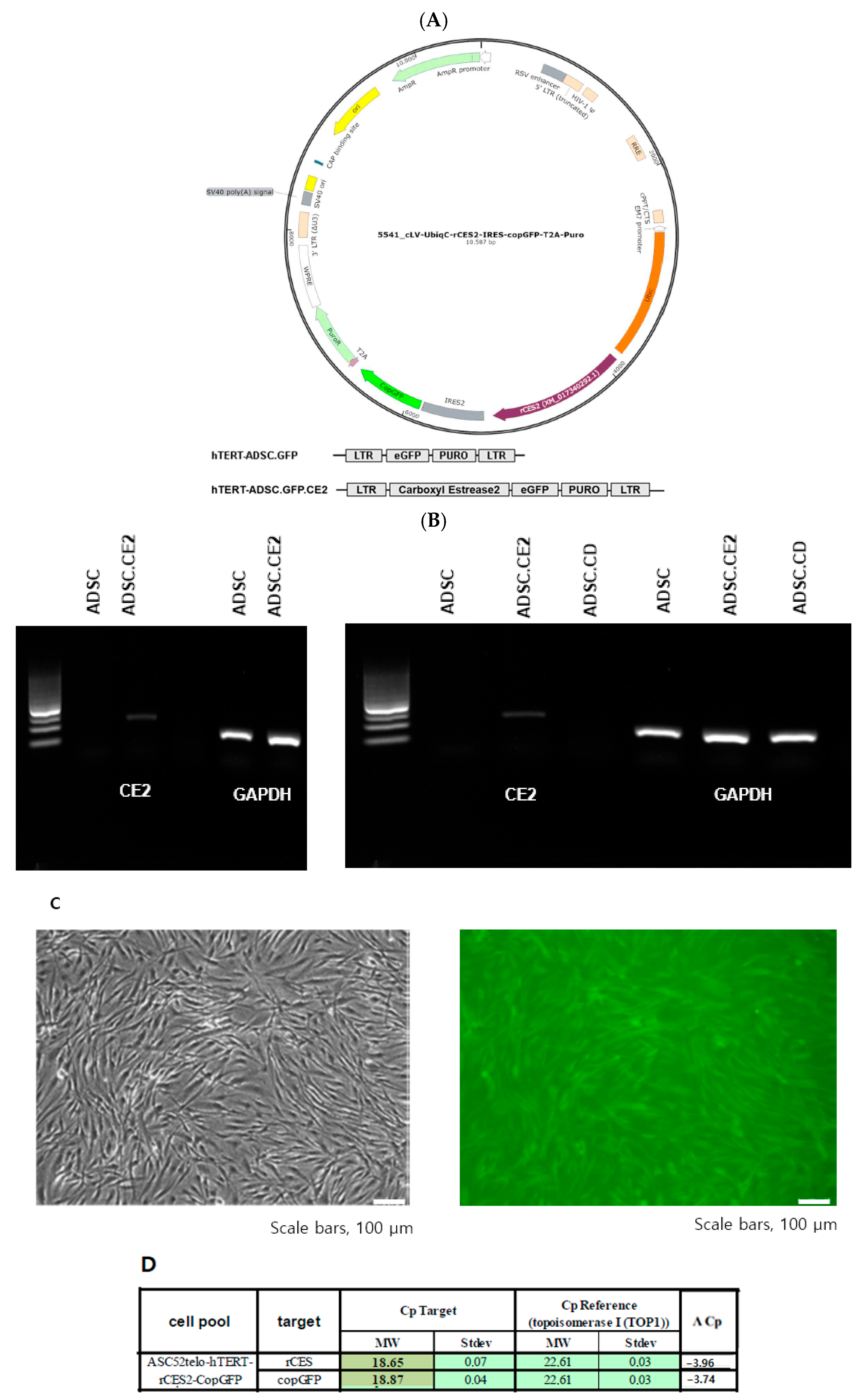 3.2. Establishment of CE2-Expressing hTERT-ADSCs