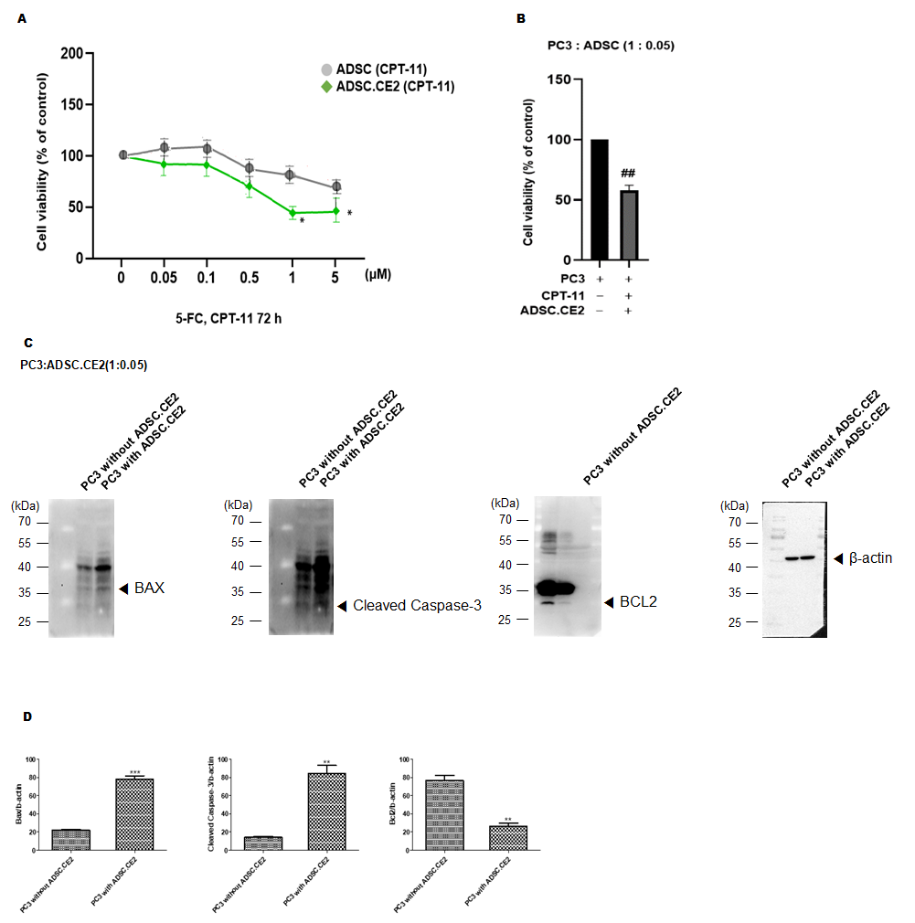 3.3.1. In Vitro Tumor-Selective Cytotoxicity of hTERT-ADSC.CE2 with CPT-11
