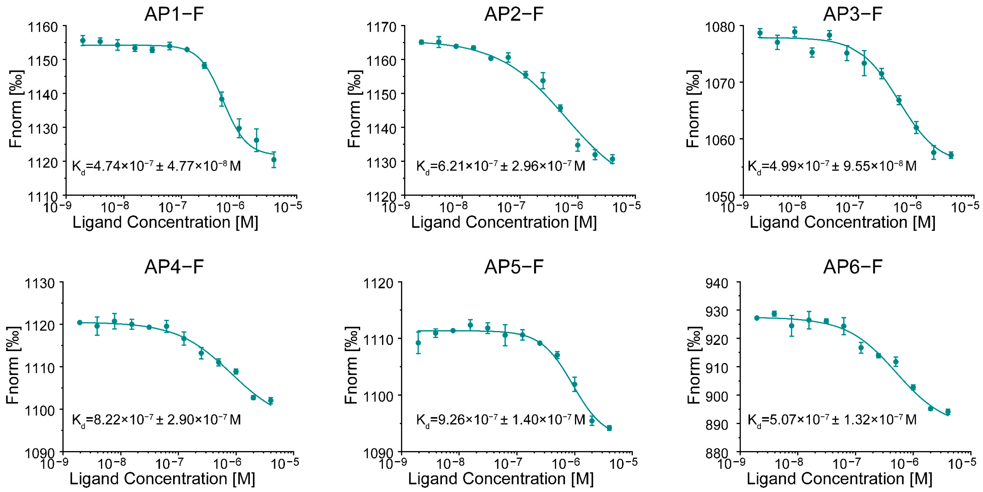 - Ji, C.; Wei, J.; Zhang, L.; Hou, X.; Tan, J.; Yuan, Q.; Tan, W. Aptamer-Protein Interactions: From Regulation to Biomolecular Detection. Chem. Rev. 2023, 123, 12471–12506. [Google Scholar] [CrossRef]
