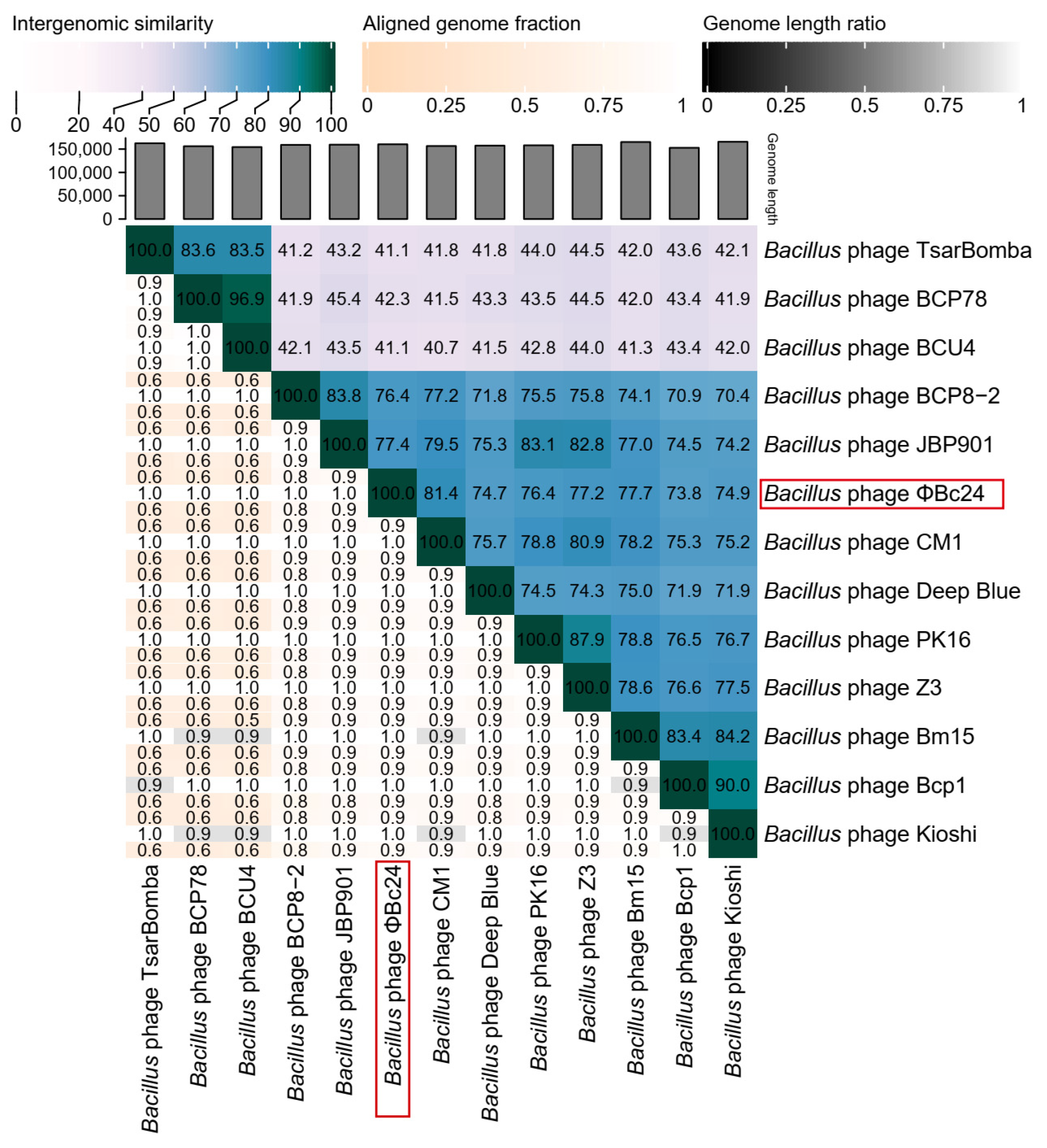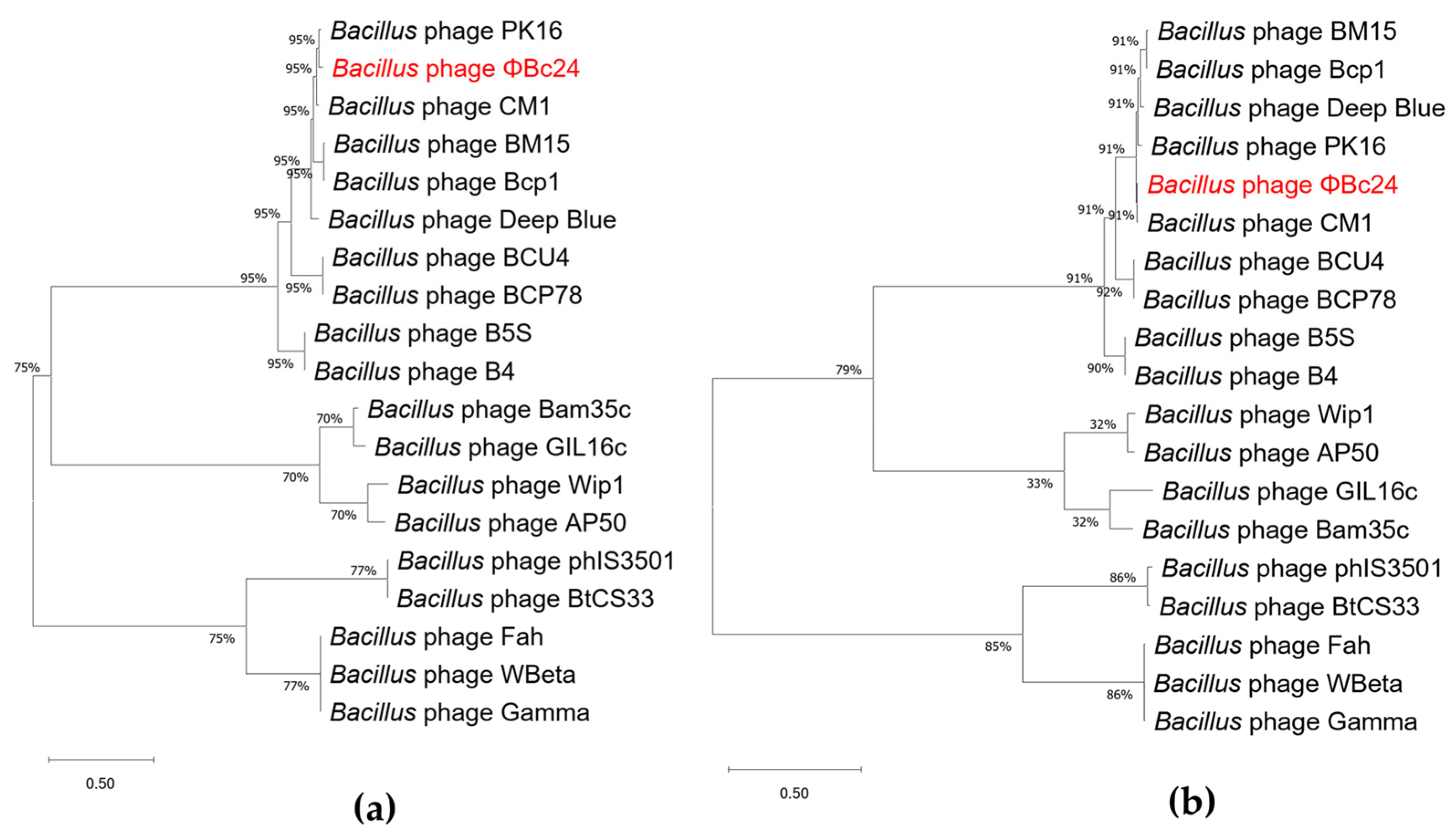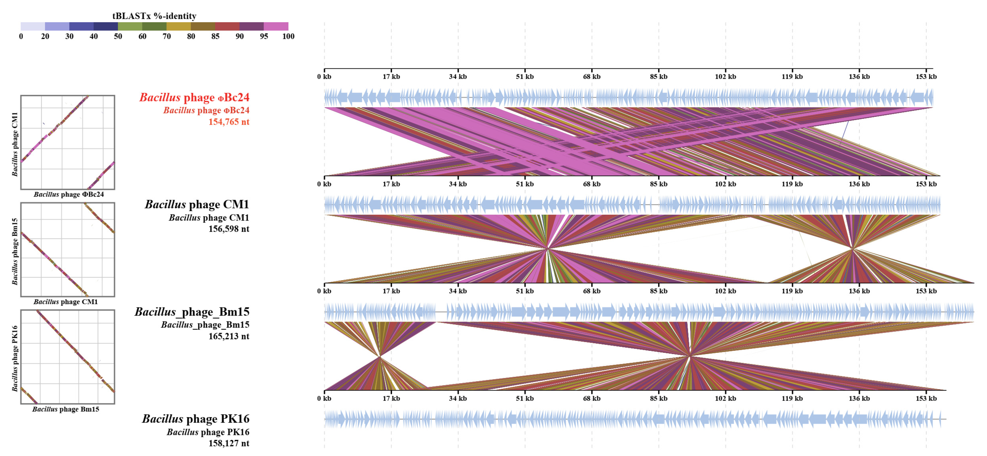 3.9. Phylogenetic Analyses of Phage ΦBc24