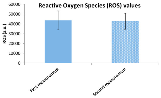 Reactive Oxygen Species (ROS) mean values ± SD in the control group at the first and the second measurement.