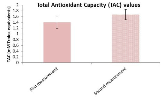 Total Antioxidant Capacity (TAC) mean values ± SD in the control group at the first and the second measurement.