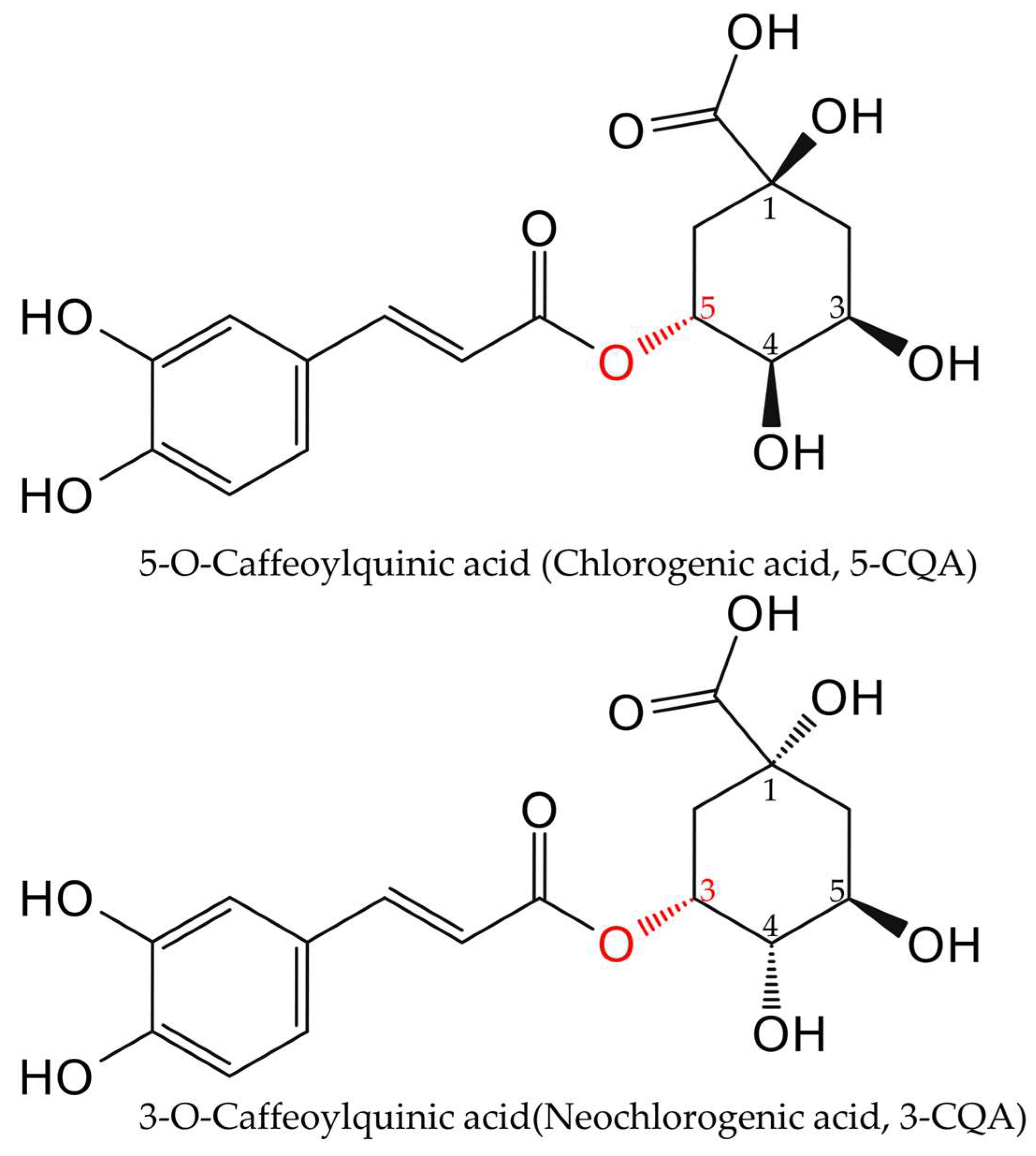 - Liu, W.; Li, J.; Zhang, X.; Zu, Y.; Yang, Y.; Liu, W.; Xu, Z.; Gao, H.; Sun, X.; Jiang, X.; et al. Current Advances in Naturally Occurring Caffeoylquinic Acids: Structure, Bioactivity, and Synthesis. J. Agric. Food Chem. 2020, 68, 10489–10516. [Google Scholar] [CrossRef] [PubMed]