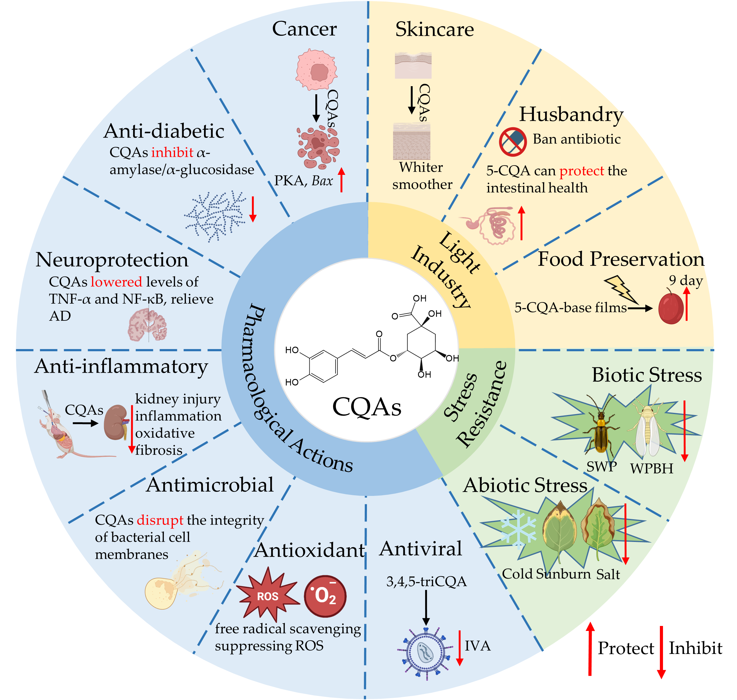 Chen, H.; Pan, B.; Zhang, S.; Li, X.; Zhang, Y.; Gao, K.; Chen, D.; Wang, L.; Jiang, T.; Luo, C.; et al. Recent Advances in Biosynthesis and Bioactivity of Plant Caffeoylquinic Acids. Curr. Issues Mol. Biol. 2025, 47, 942. https://doi.org/10.3390/cimb47110942