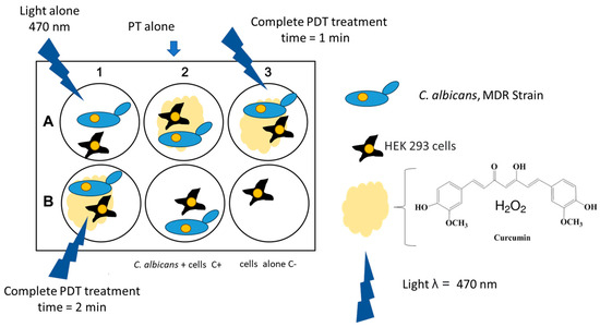 - Casu, C.; Orrù, G.; Scano, A. Curcumin/H2O2 photodynamically activated: An antimicrobial time-response assessment against an MDR strain of Candida albicans. Eur. Rev. Med. Pharmacol. Sci. 2022, 26, 8841–8851. [Google Scholar] [CrossRef]