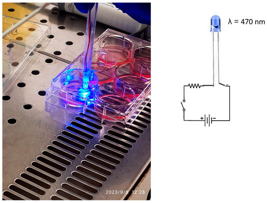 The cell HEK-293 (human embryonic kidney) culture, and the lab-made device used to emit light at 470 nm radiation.
