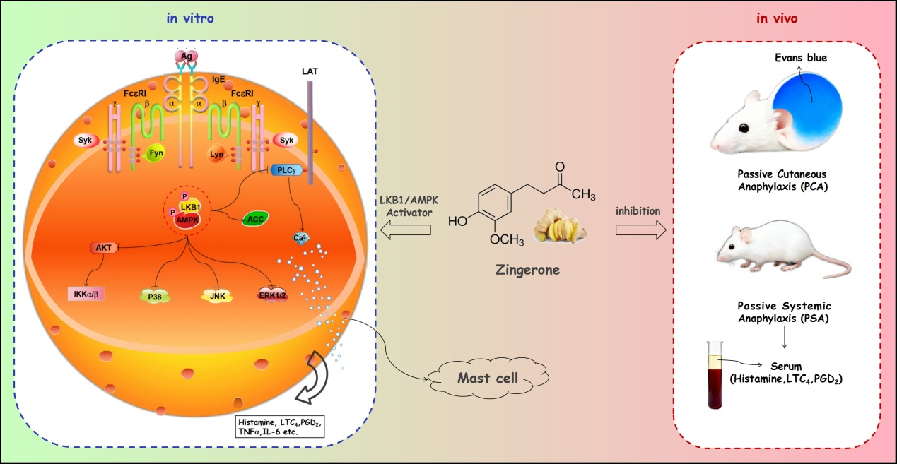 Zheng, D.; Zhang, H.; Mao, C.; Liang, J.; Li, X. Zingerone Targets LKB1/AMPK to Block FcεRI-Dependent Mast Cell Degranulation and Anaphylaxis. Curr. Issues Mol. Biol. 2025, 47, 963. https://doi.org/10.3390/cimb47110963