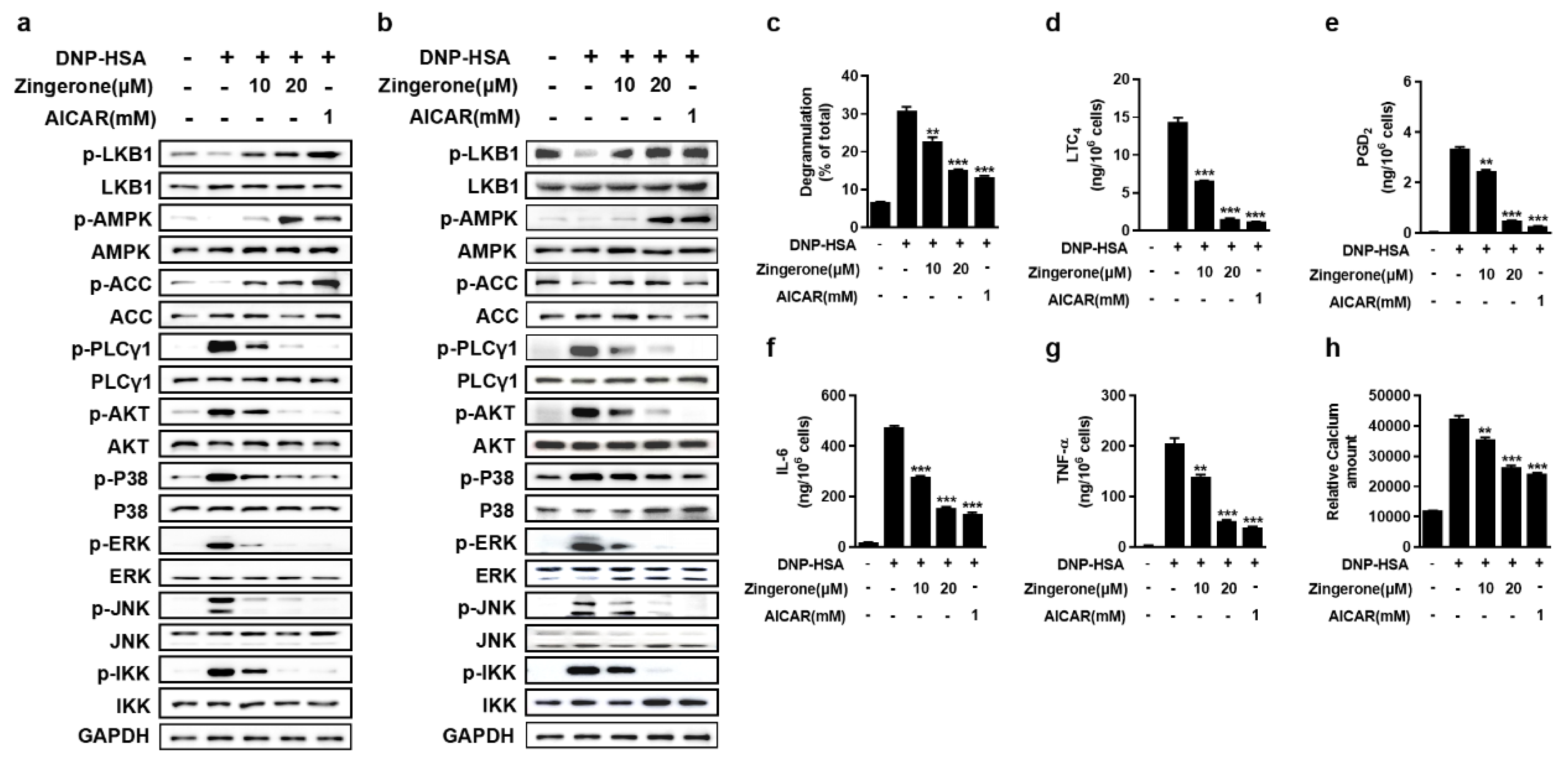 3.2. Zingerone Suppresses IgE/Ag-Induced Mast Cell Activation Through Potentiation of the LKB1-AMPK Signaling Axis