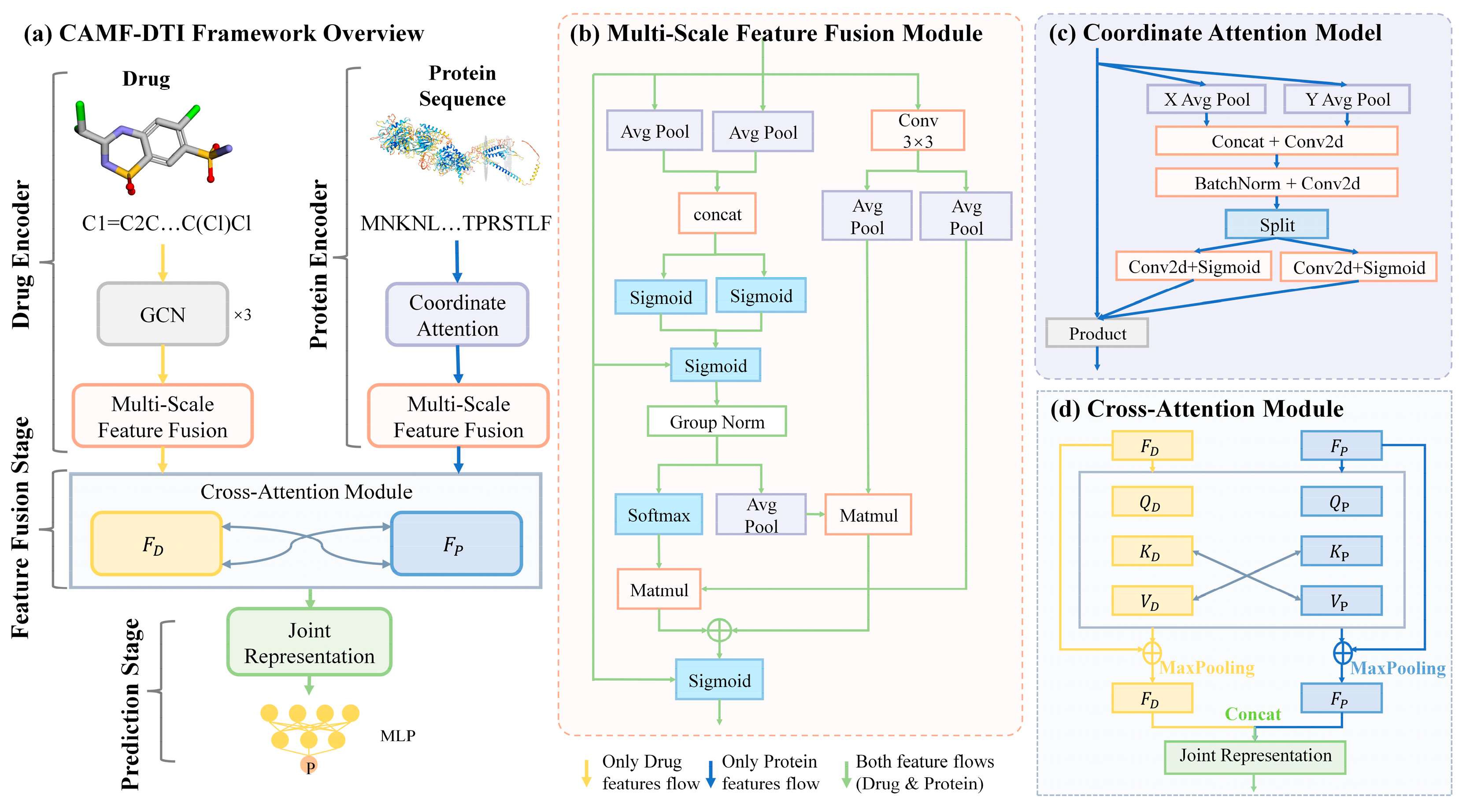 APA StyleMi, J., Li, C., Jiang, D., & Wan, J. (2025). CAMF-DTI: Enhancing Drug–Target Interaction Prediction via Coordinate Attention and Multi-Scale Feature Fusion. Current Issues in Molecular Biology, 47(11), 964. https://doi.org/10.3390/cimb47110964