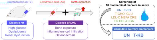Qin, K.; Nakagawa, M.; Sumi, Y.; Zhang, B.; Uemura, M.; Honda, Y. Screening of Salivary Biomarkers of Bisphosphonate-Related Osteonecrosis of the Jaw in a Diabetic Rat Model. Curr. Issues Mol. Biol. 2025, 47, 1002. https://doi.org/10.3390/cimb47121002