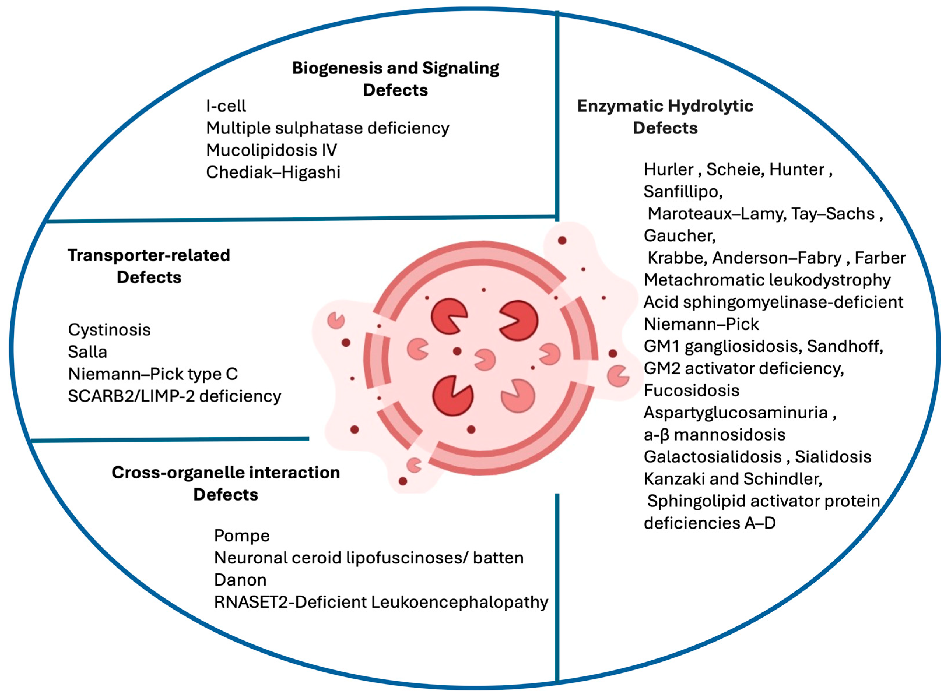 Makridou, A.; Sintou, E.; Chatzianagnosti, S.; Gargani, S.; Manthou, M.E.; Dermitzakis, I.; Theotokis, P. Mapping Lysosomal Storage Disorders with Neurological Features by Cellular Pathways: Towards Precision Medicine. Curr. Issues Mol. Biol. 2025, 47, 1009. https://doi.org/10.3390/cimb47121009