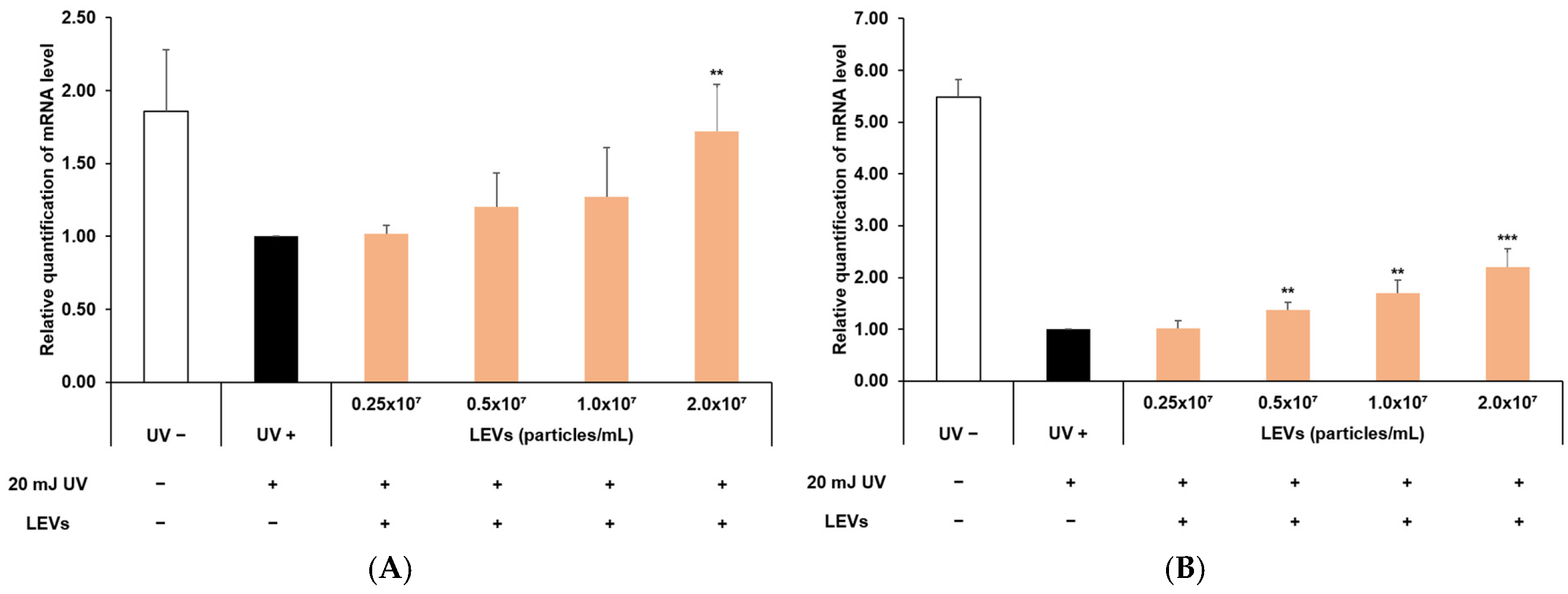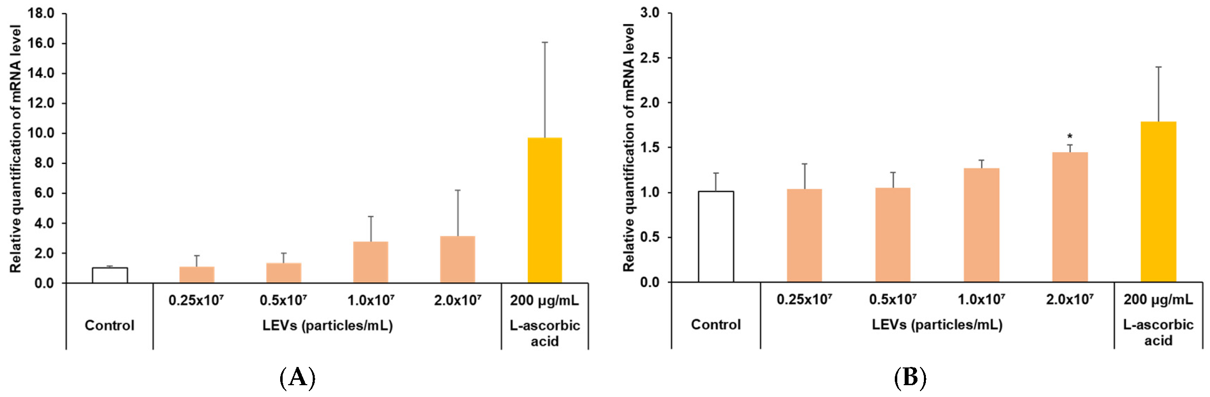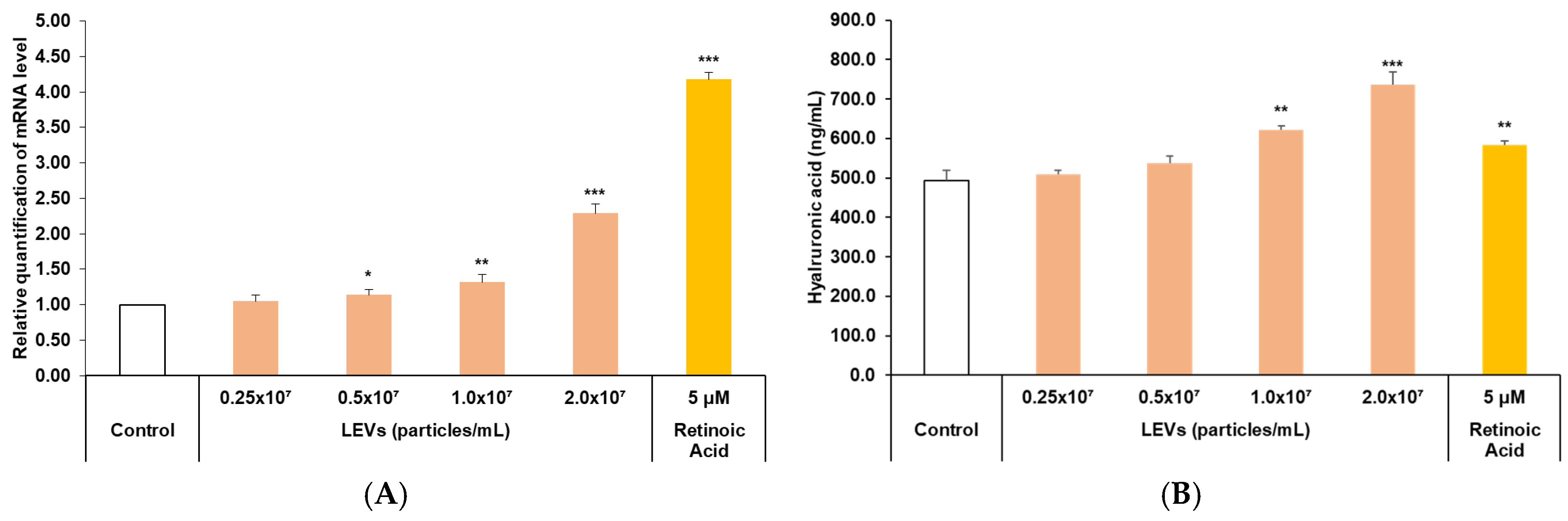2.8. Analysis of LEVs on Skin Barrier Regulation via Real-Time PCR and ELISA