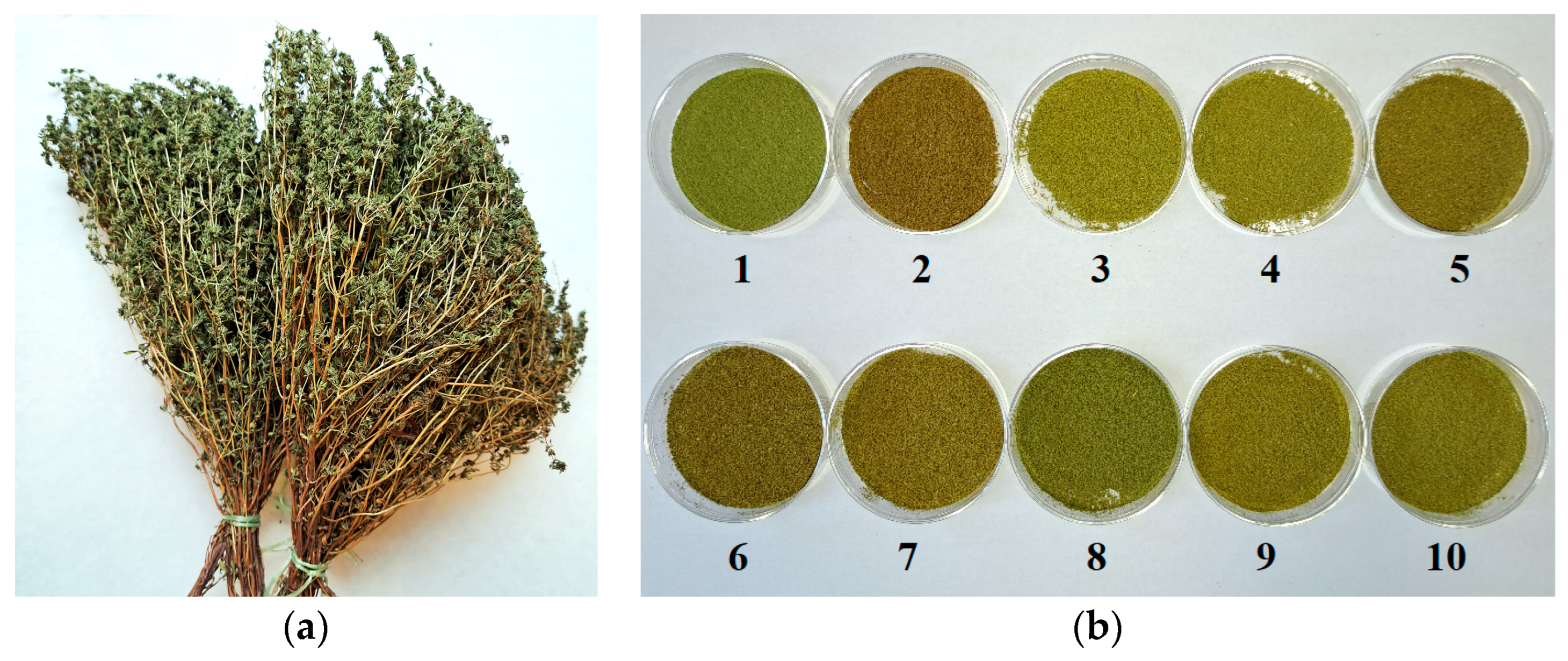 - Grigore-Gurgu, L.; Dumitrașcu, L.; Aprodu, I. Aromatic Herbs as a Source of Bioactive Compounds: An Overview of Their Antioxidant Capacity, Antimicrobial Activity, and Major Applications. Molecules 2025, 30, 1304. [Google Scholar] [CrossRef]