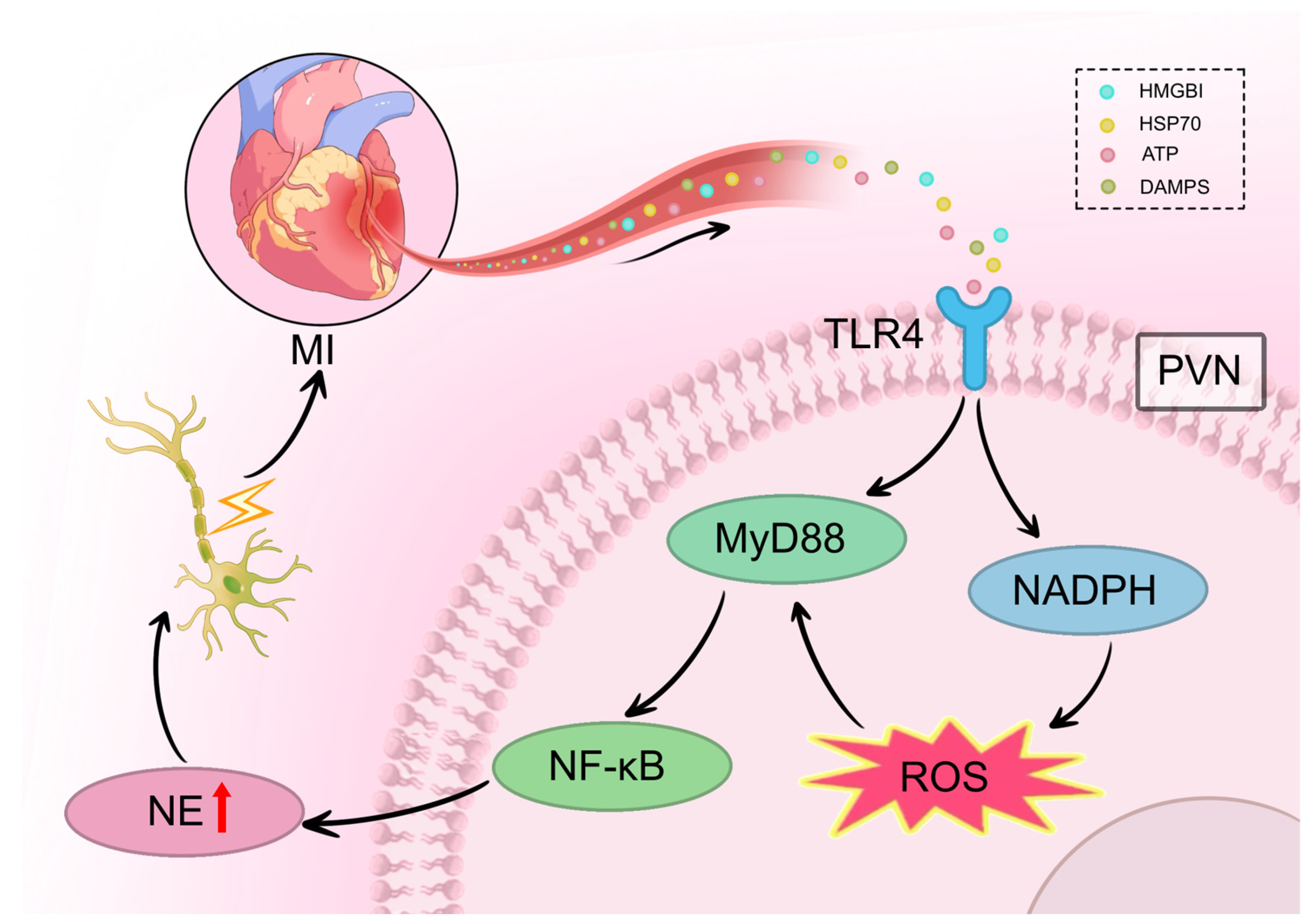 4.1. The Role of the TLR4/MyD88/NF-κB Signaling Pathway in the PVN in Post-MI Sympathetic Nerve Remodeling