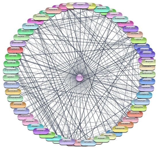 Interaction Network of 65 FDA-Approved Drugs with IL-1β.