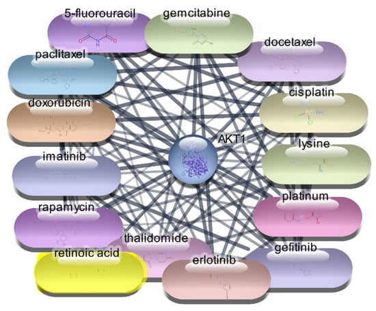 Interaction Network of 106 FDA-Approved Drugs with AKT-1.