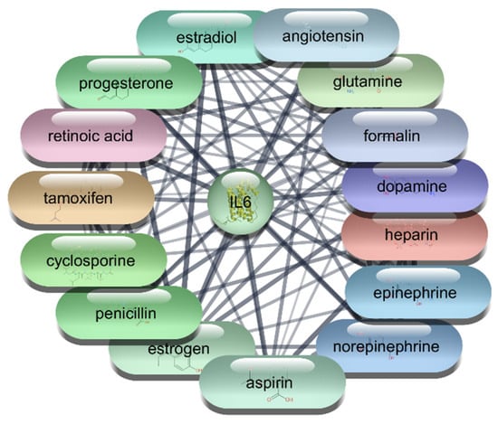 Interaction Network of 97 FDA-Approved Drugs with IL-6.