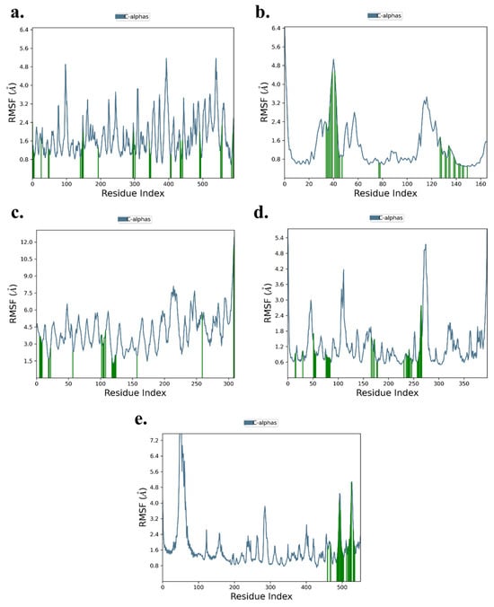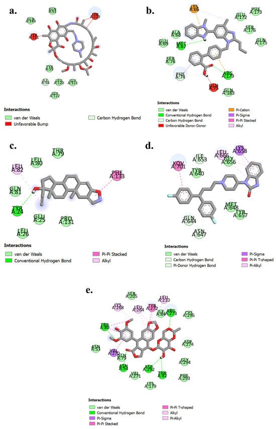 Active binding sites within the catalytic pockets of each target protein were identified using the online tool Protein–Ligand Interaction Profile (PLIP). This step was essential for pinpointing regions on the protein surface likely to interact with small molecule ligands [42,43].
