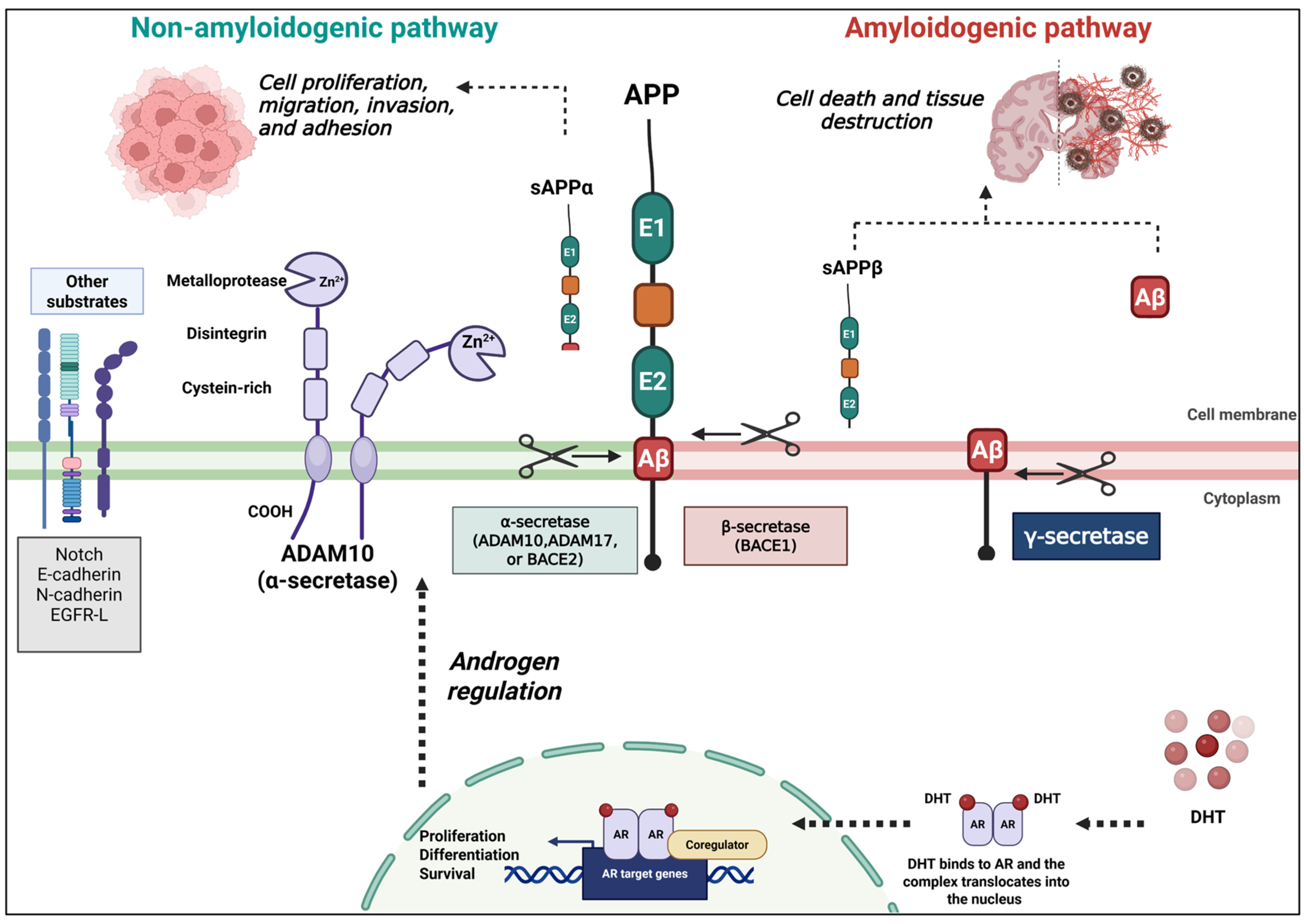 Alhadrami, M.; Stone, G.; Barker, R.M.; Palmer, J.C.; Kehoe, P.G.; Perks, C.M. Androgen Effects on Amyloid Precursor Protein Processing Pathways in Cancer: A Systematic Review. Curr. Issues Mol. Biol. 2025, 47, 1041. https://doi.org/10.3390/cimb47121041