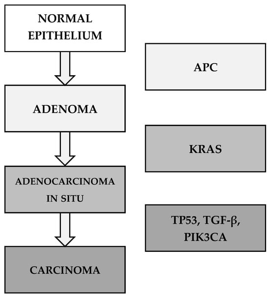 - Fearon, E.R.; Vogelstein, B. A genetic model for colorectal tumorigenesis. Cell 1990, 61, 759–767. [Google Scholar] [CrossRef] [PubMed]