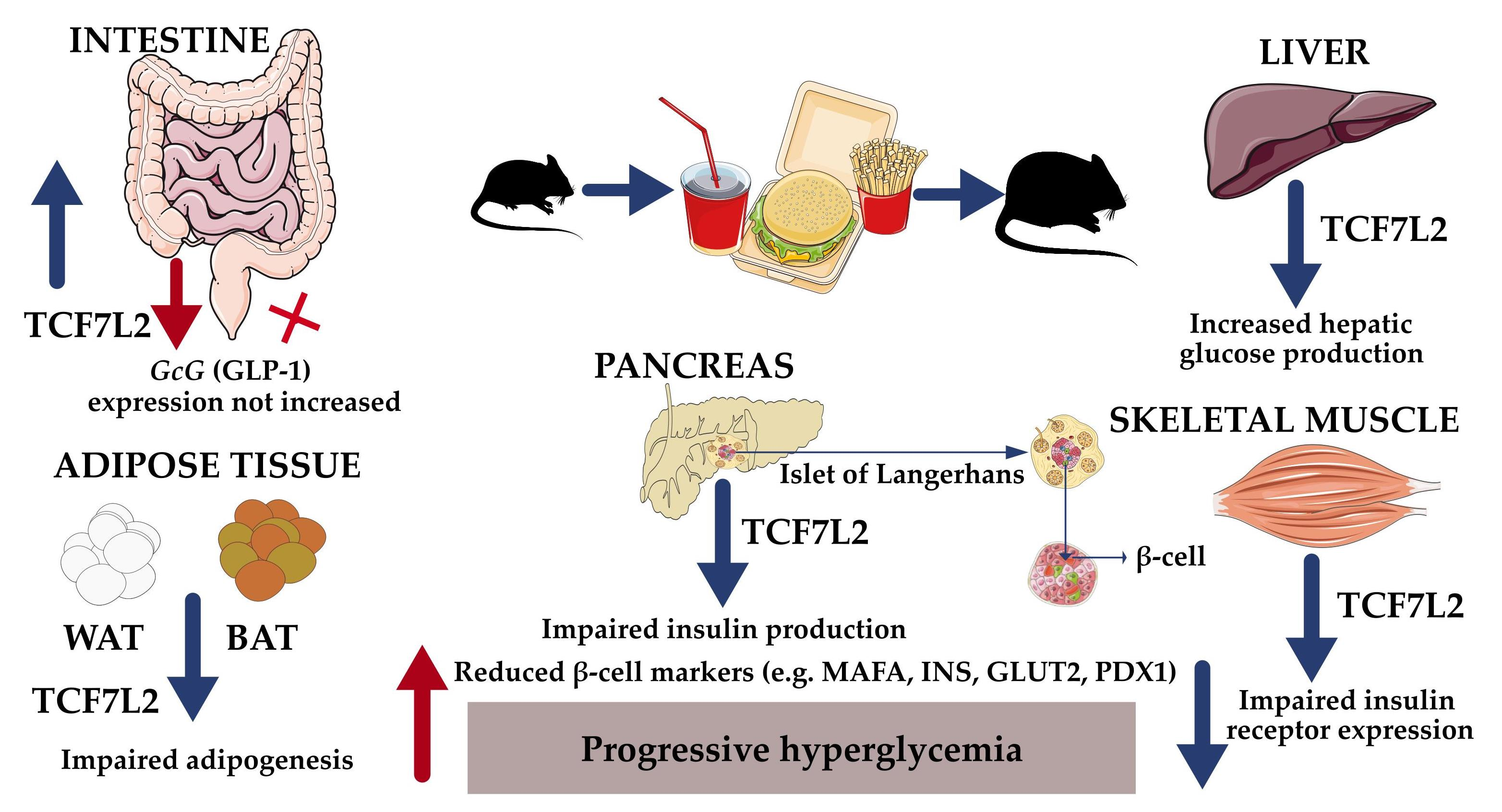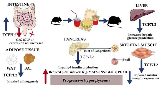 - Takamoto, I.; Kubota, N.; Nakaya, K.; Kumagai, K.; Hashimoto, S.; Kubota, T.; Inoue, M.; Kajiwara, E.; Katsuyama, H.; Obata, A.; et al. TCF7L2 in mouse pancreatic beta cells plays a crucial role in glucose homeostasis by regulating beta cell mass. Diabetologia 2014, 57, 542–553. [Google Scholar] [CrossRef] [PubMed]