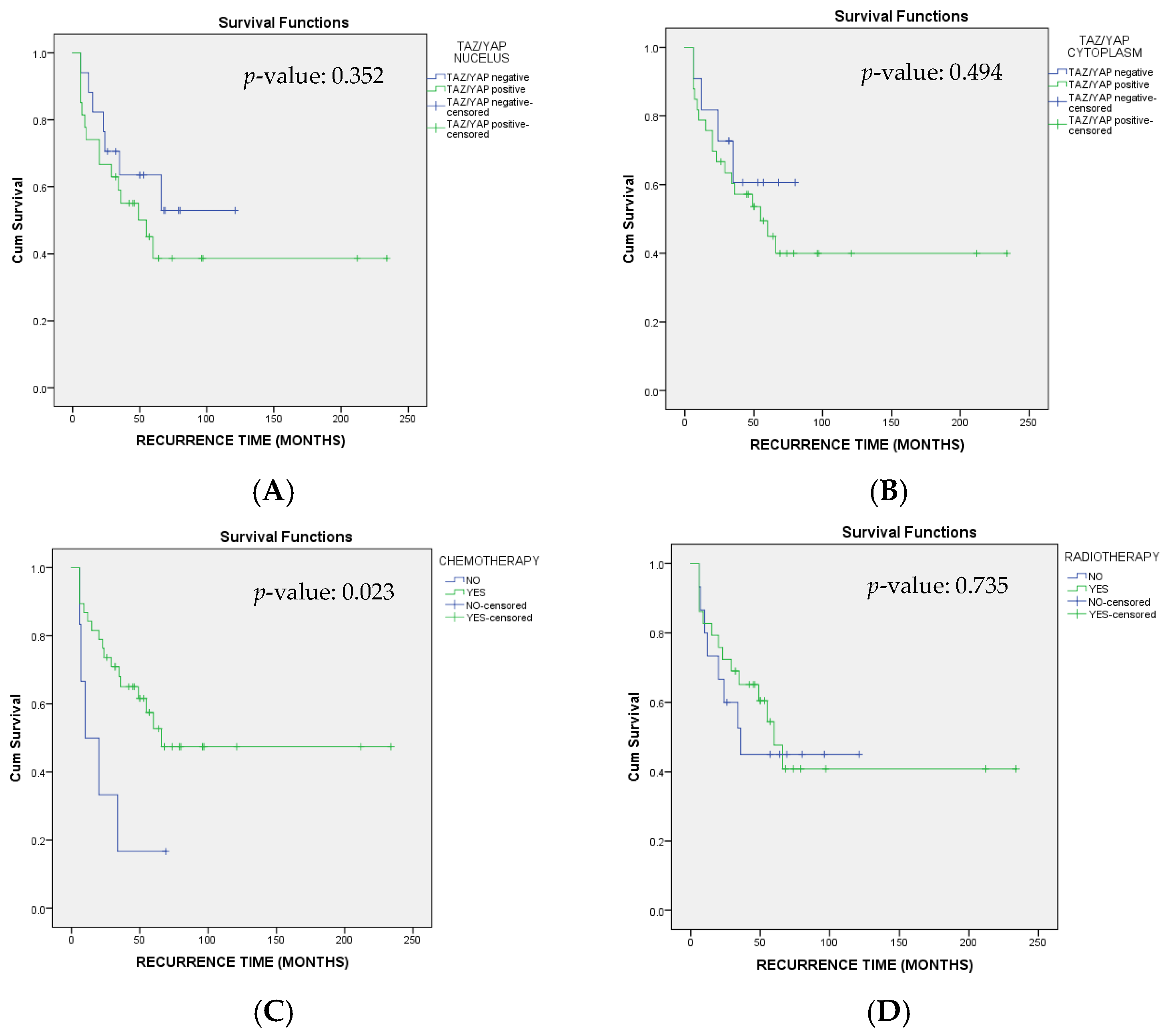 - Díaz-Martín, J.; López-García, M.; Romero-Pérez, L.; Atienza-Amores, M.R.; Pecero, M.L.; Castilla, M.; Biscuola, M.; Santón, A.; Palacios, J. Nuclear TAZ expression associates with the triple-negative phenotype in breast cancer. Endocr.-Relat. Cancer 2015, 22, 443–454. [Google Scholar] [CrossRef]