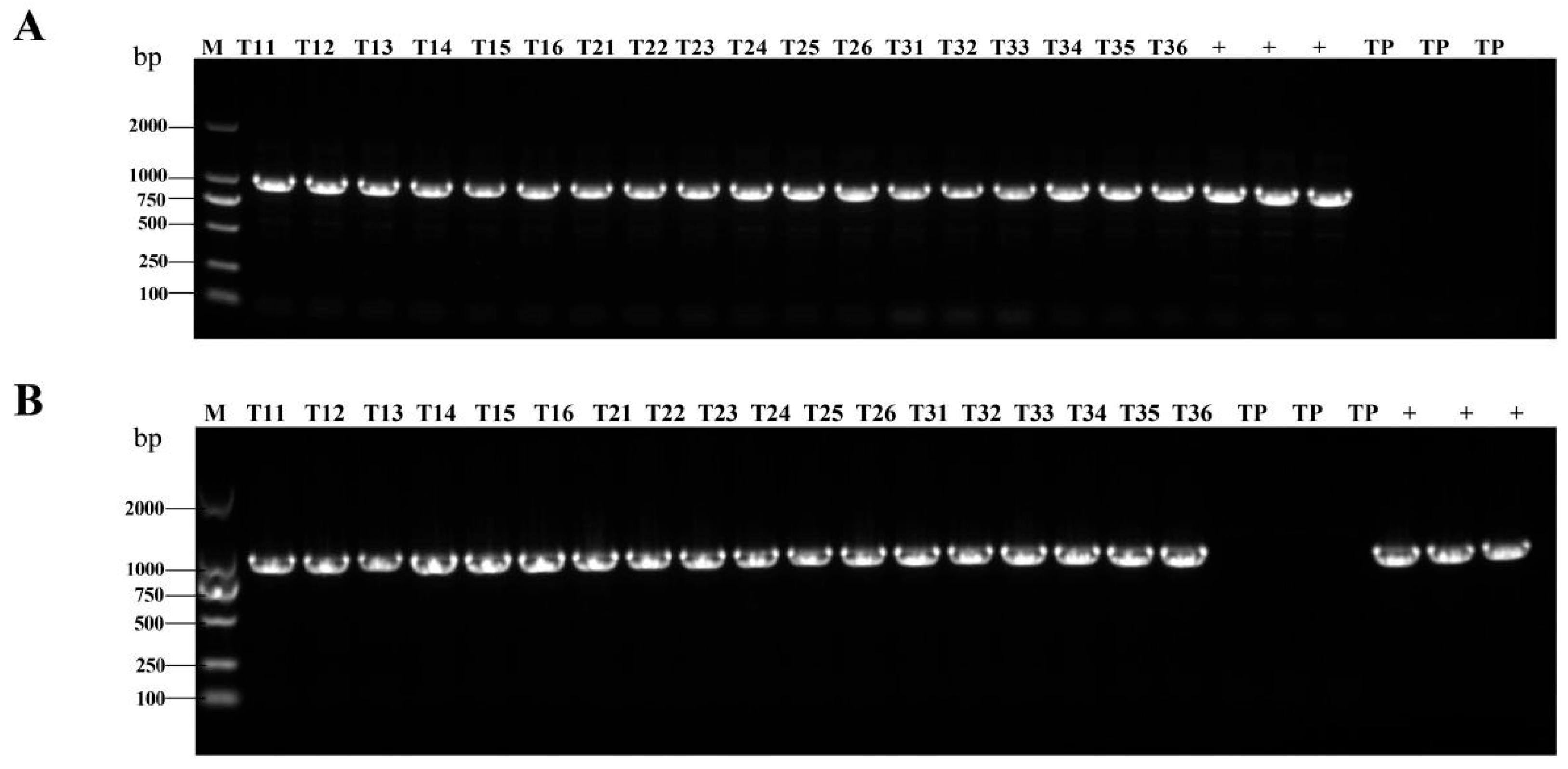 3.6. Comparison of Pollen Viability Between Transformant Strains of Generations T1–T3 and Tp309