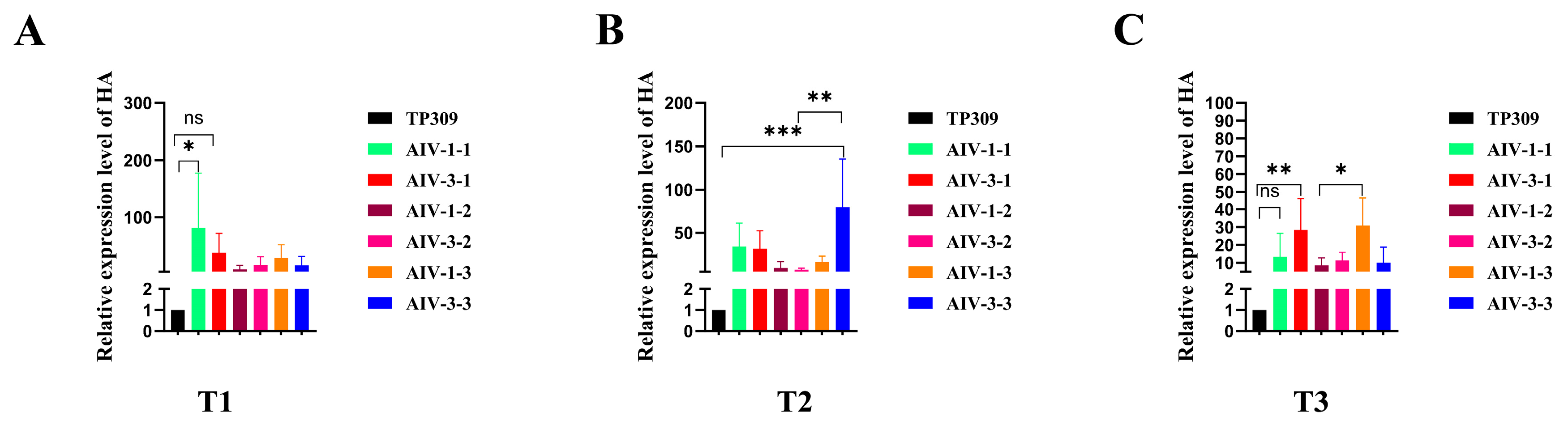 3.1. Stable Expression of Ha Antigen in Different Generations of Rice