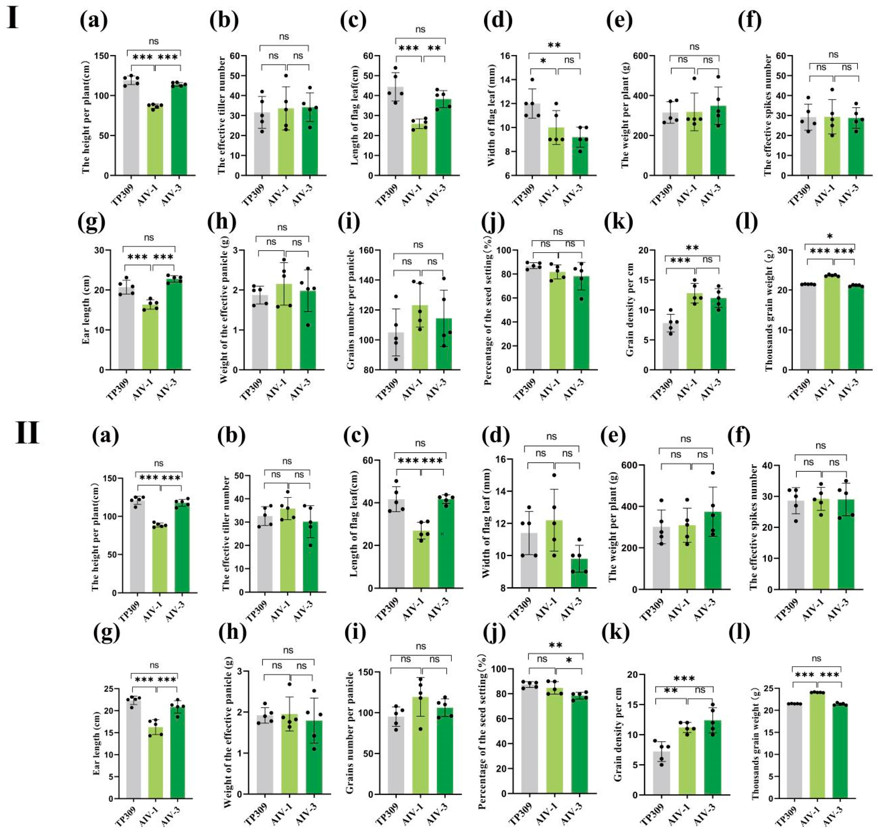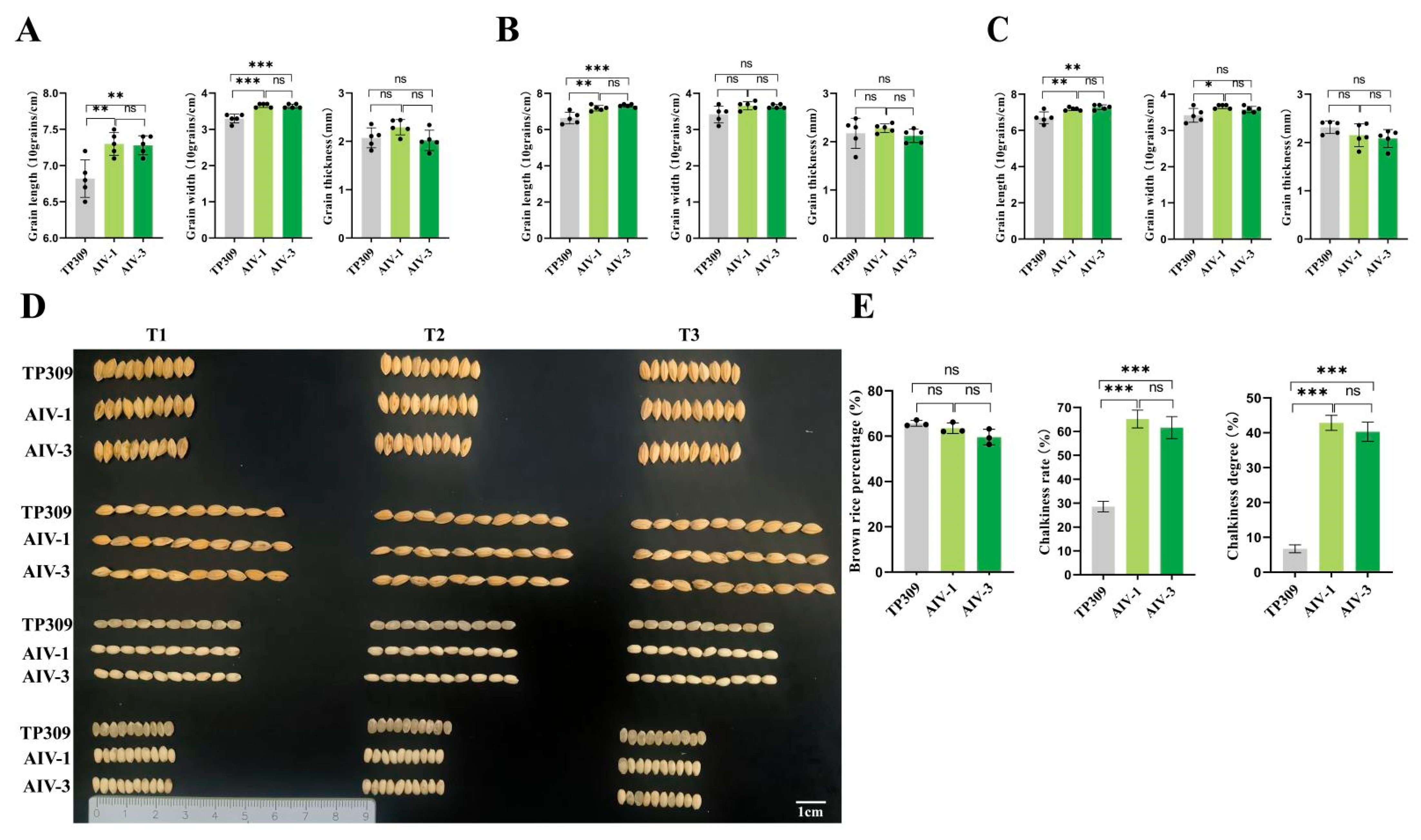 3.3. Grain Phenotypes of Generation T1–T3 Transformant Strains and Tp309